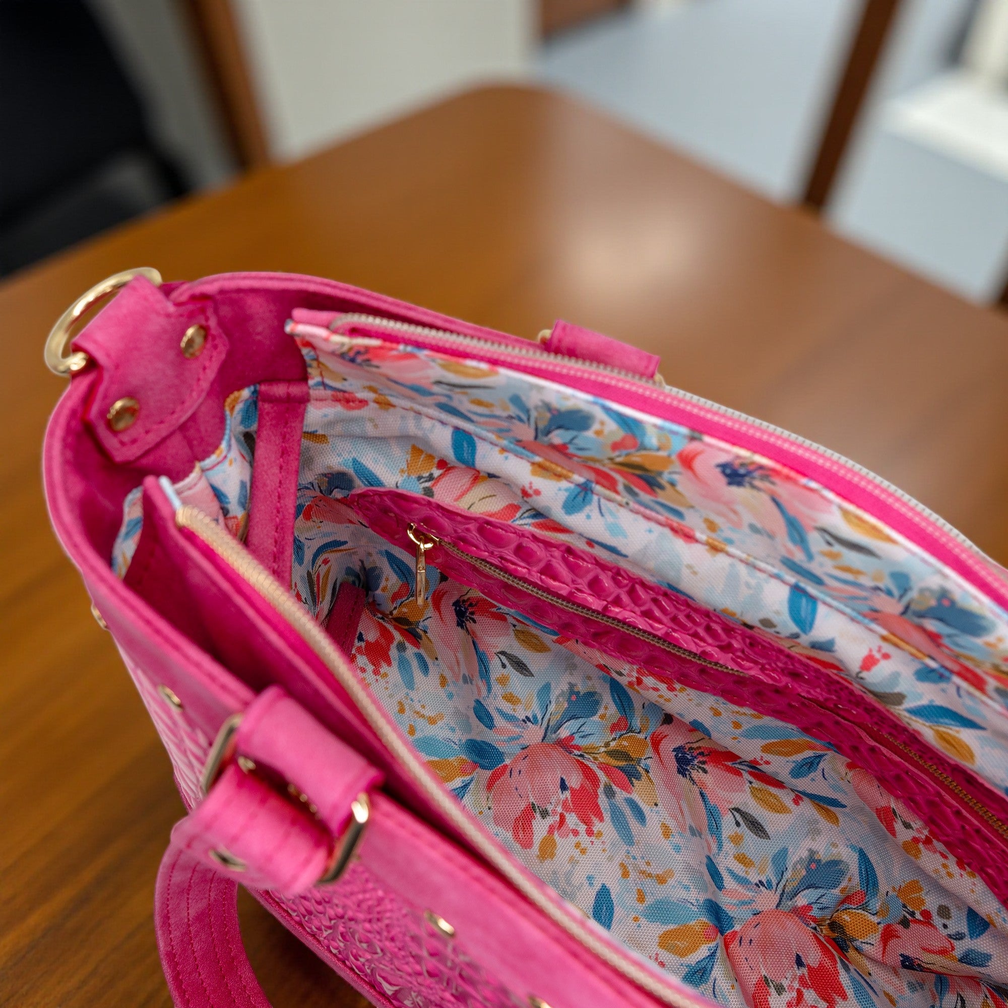 Add an artistic touch to your bags with Painted Petals Water-Resistant Canvas. This expressive floral features loose, hand-painted strokes in coral, teal, mustard, and ivory, set against a soft speckled background. It’s bold without being overpowering, and the PU-coated 600 denier canvas provides strong, stable structure.