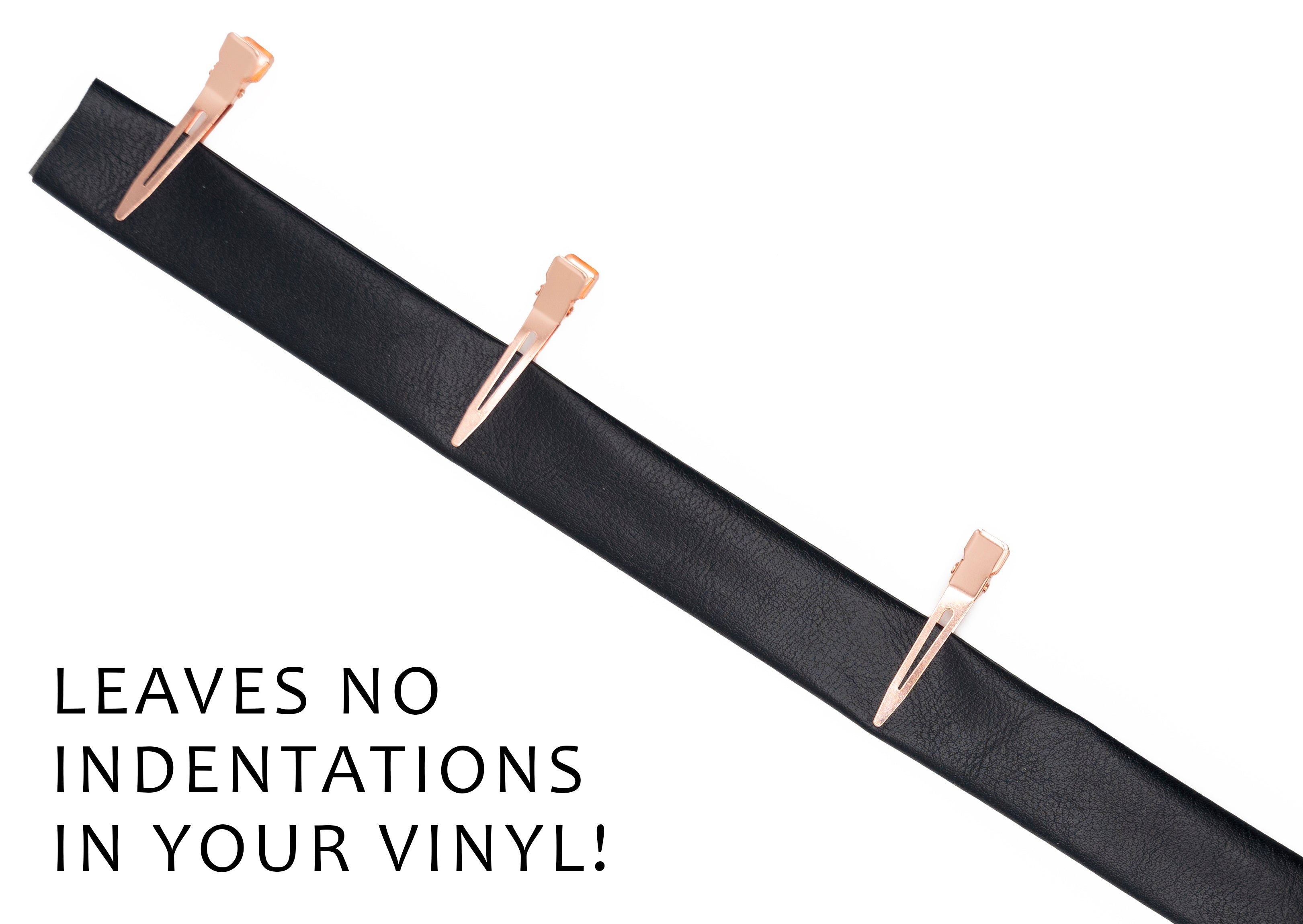 Enhance your sewing projects with our Rose Gold Vinyl Clips, designed to securely hold multiple layers of vinyl without leaving marks. Unlike traditional quilting clips, these 45mm alligator clips prevent indentations, making them ideal for crafting purse handles or adjustable crossbody straps. Available in a pack of 20 clips, with 20 being the perfect quantity for two purse handles or one crossbody strap.