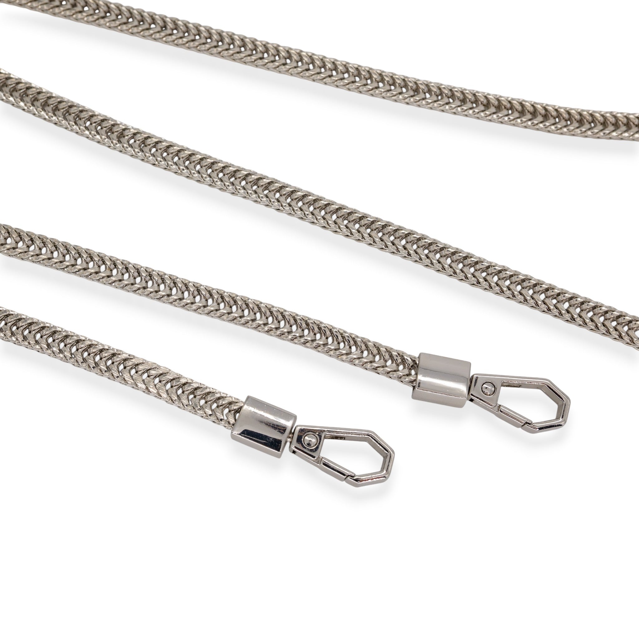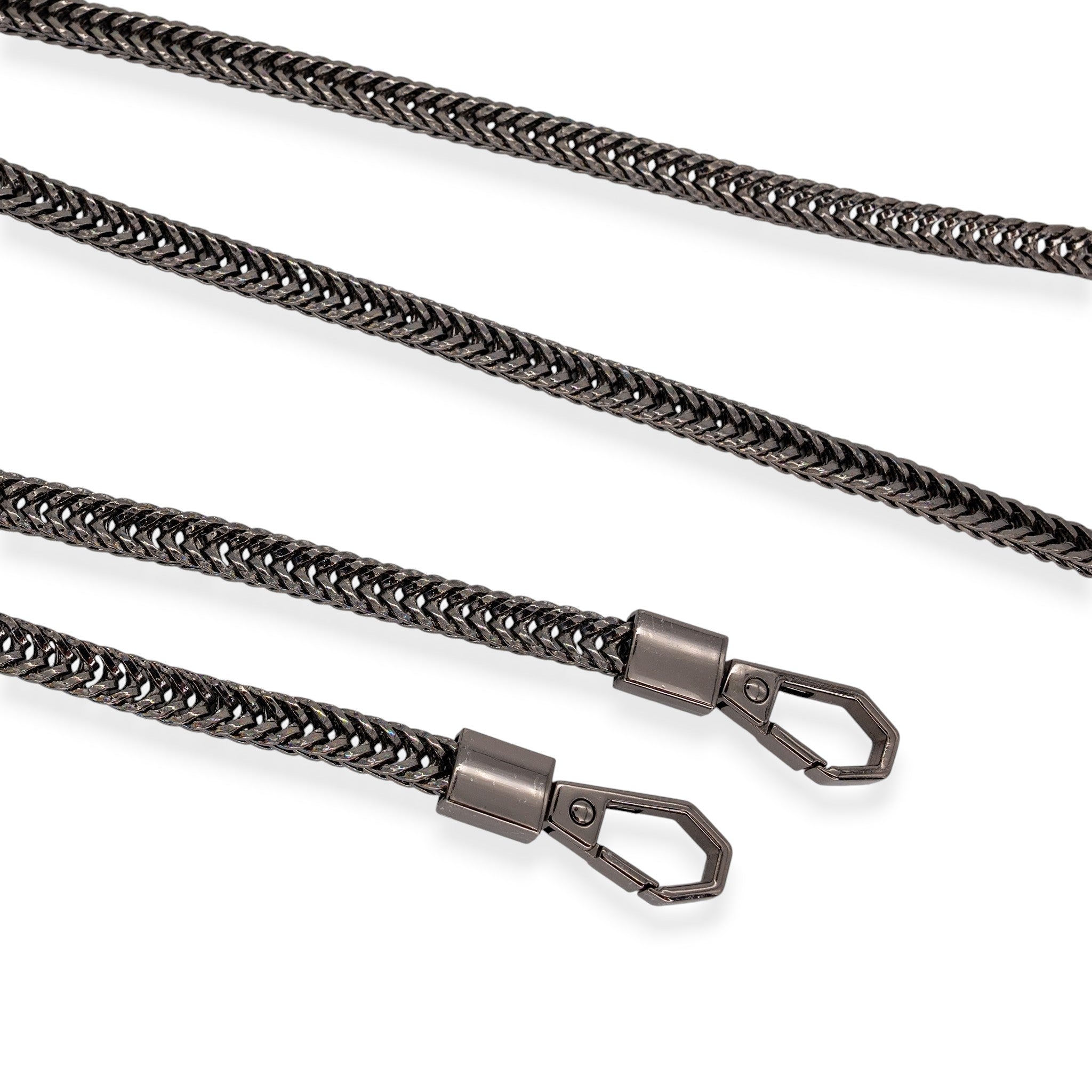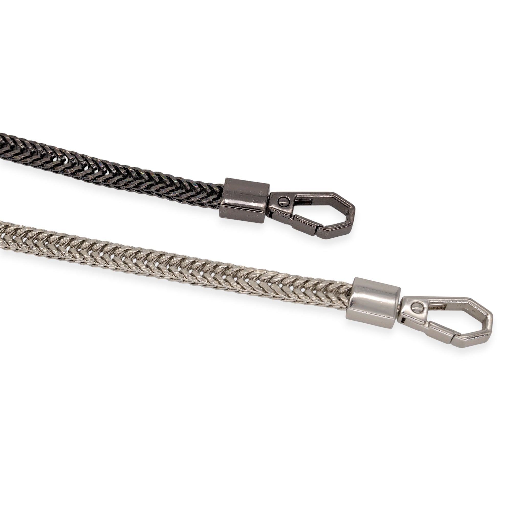 This metal snake chain bag strap adds a sleek, modern look to any handmade purse. The flexible snake-link design drapes smoothly without twisting, and the attached swivel clasps make it easy to clip onto handbags, crossbodies, or shoulder bags. Available in Nickel and Gunmetal finishes to match your hardware.
