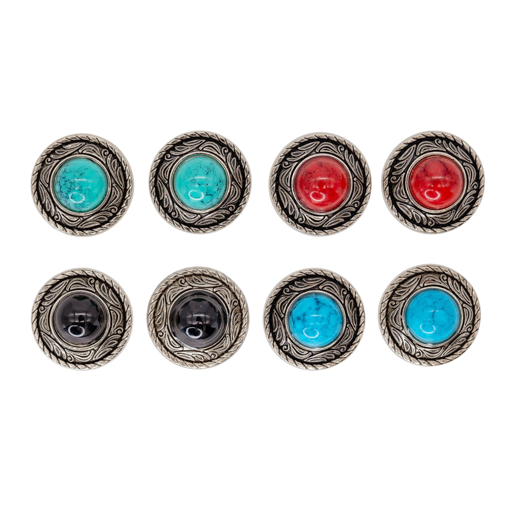 Add a Western rope edge detail to your handmade bags and leather projects with our Western Rope Edge Screw-Back Conchos. These decorative conchos feature a carved rope border with faux stone centers, perfect for Western purses, fringe bags, straps, belts, wallets, and hatbands.