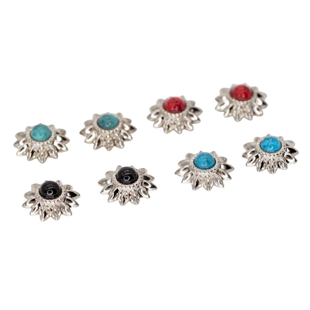 Add a Western artisan detail to your handmade bags and leather projects with our Sunflower Screw-Back Conchos. These decorative conchos feature a raised sunflower design with a faux stone center, perfect for Western purses, fringe bags, straps, belts, and hatbands.