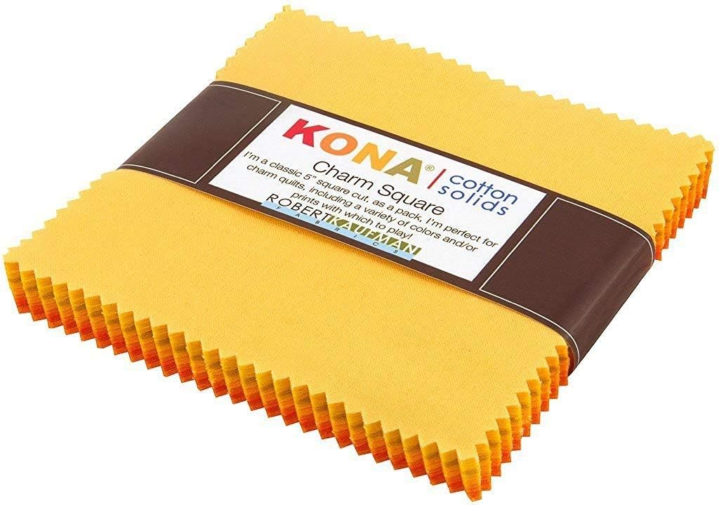 This charm pack from the Citrus Burst Palette includes 42 pieces of 5" x 5" Kona Cotton Solids in a variety of vivid colors. Perfect for adding a burst of color to your quilts, these packs are ideal for any project. With Kona, you can avoid the hassle of fabric cutting.
