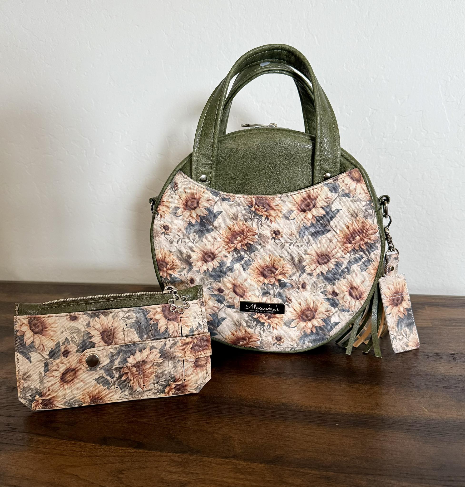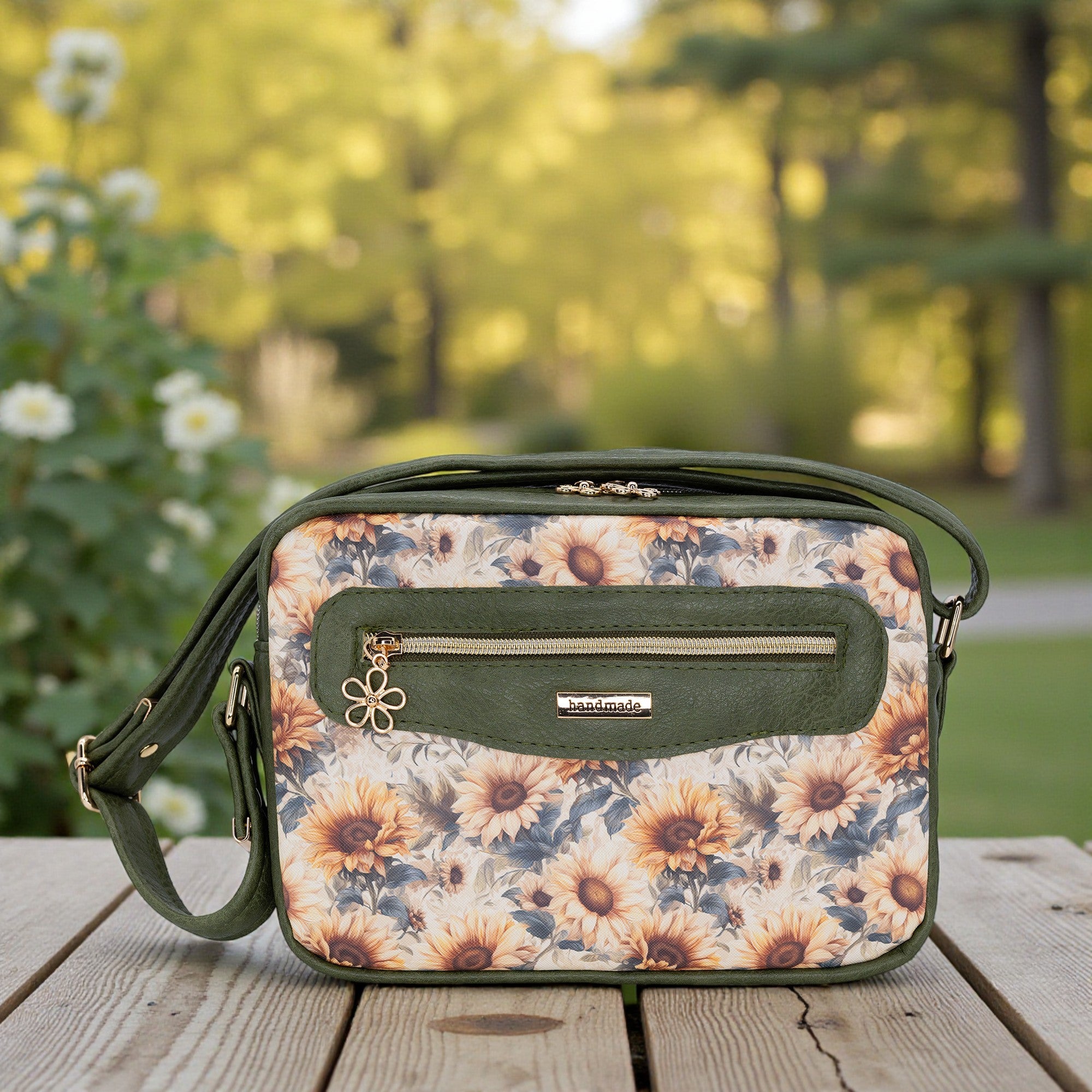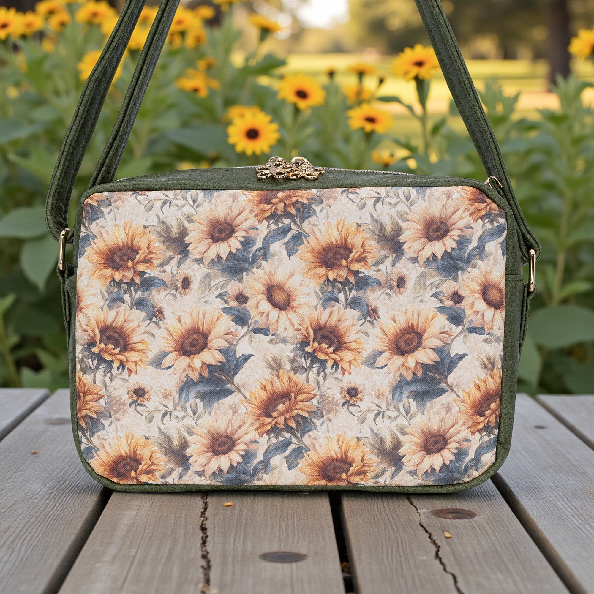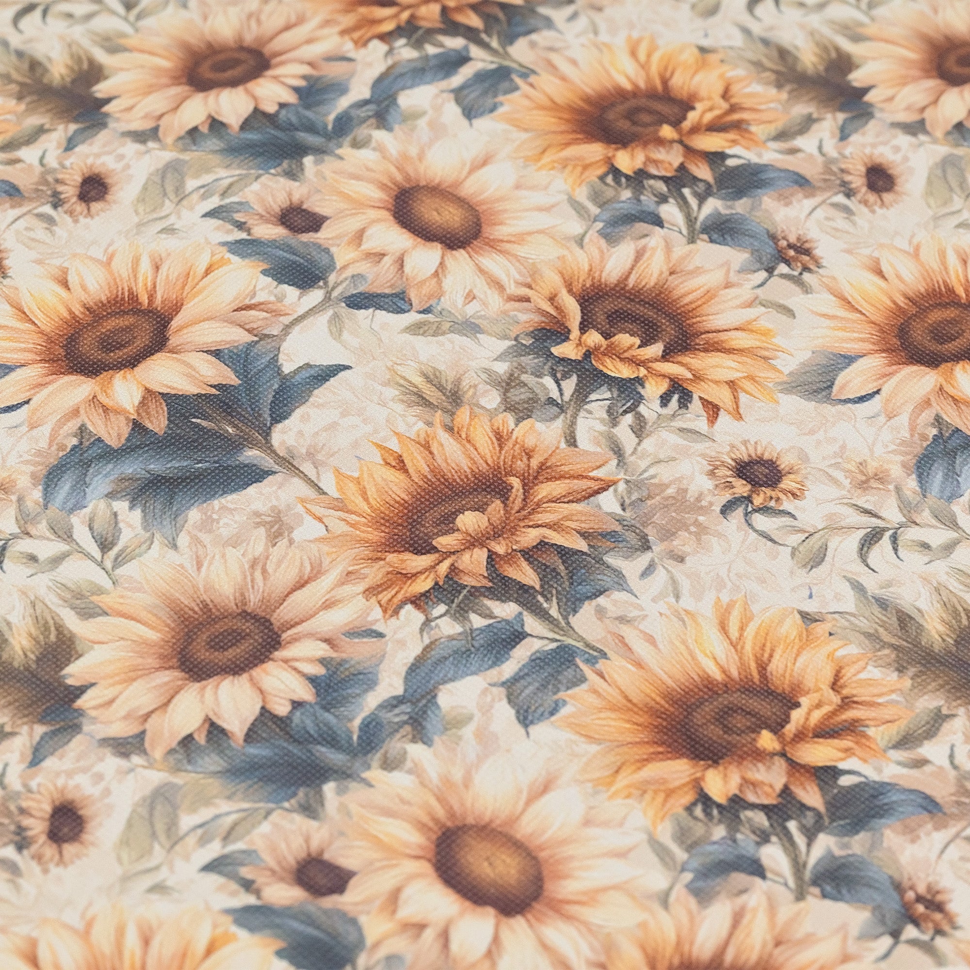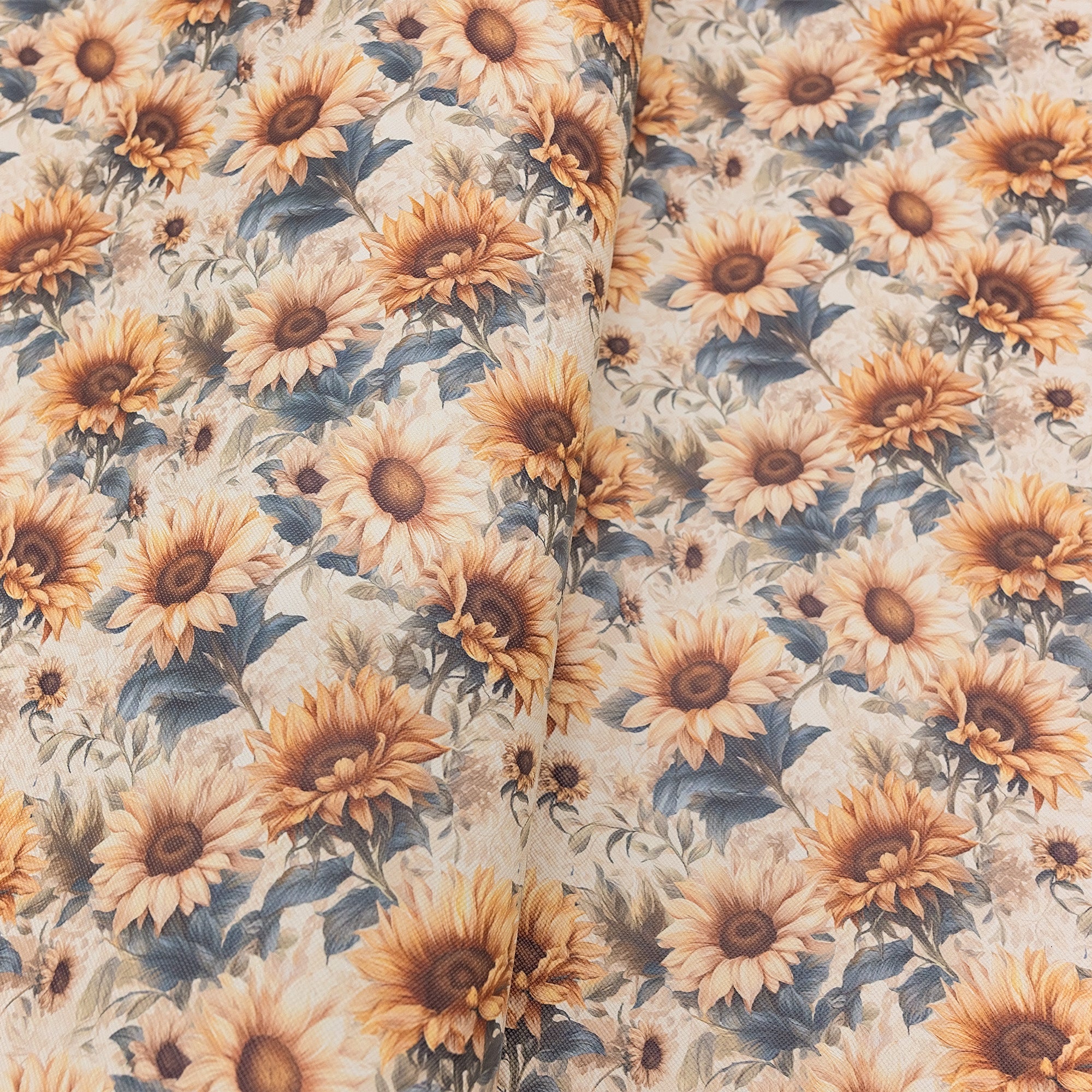 Harvest Sun Printed Vinyl captures the warmth of late-summer fields with sunflowers in soft golden tones and muted green foliage. The gentle Saffiano texture adds structure and a touch of refinement, giving your handmade bags a polished finish while keeping the design versatile and timeless.