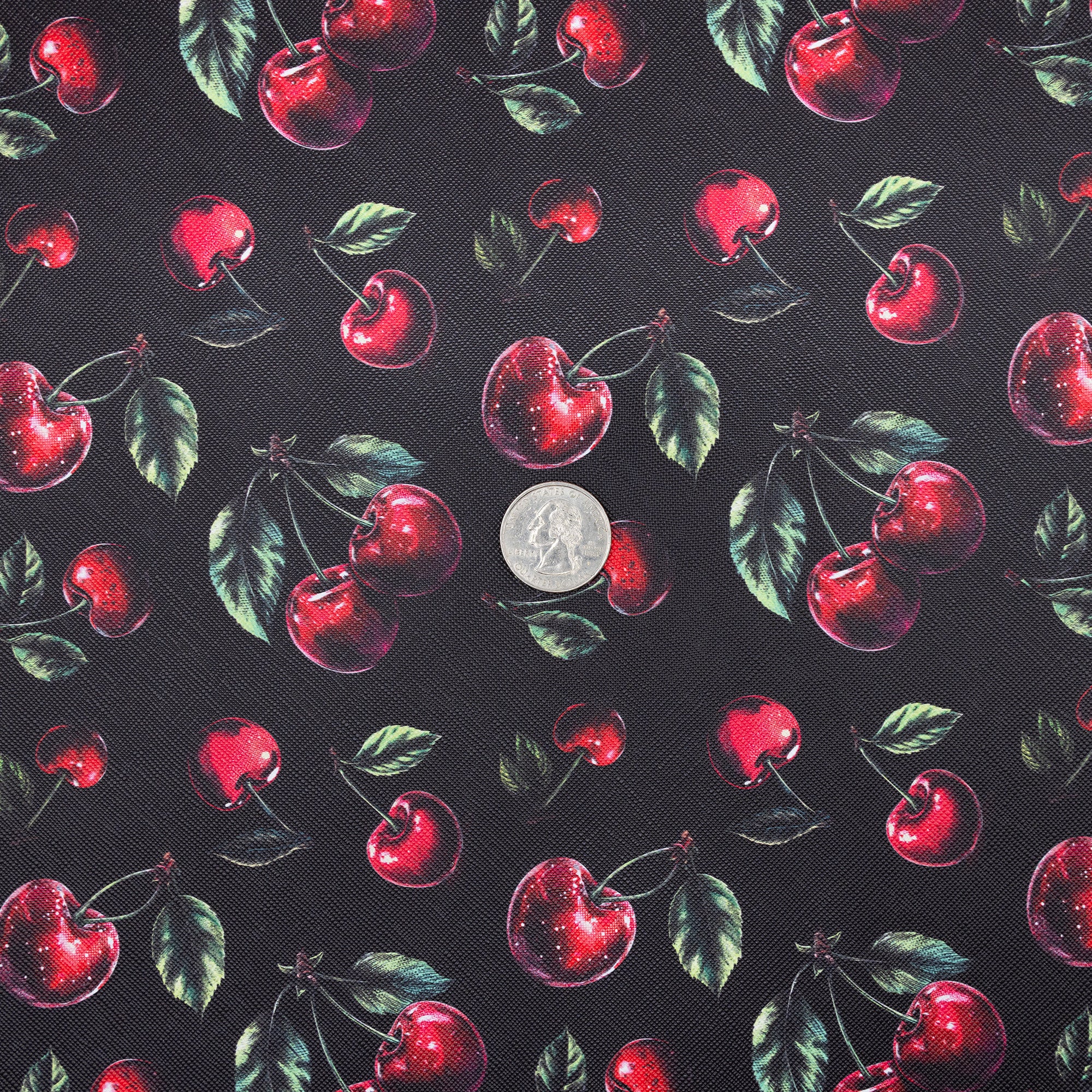 Midnight Cherries Printed Vinyl 18" x 53" Roll | Saffiano Texture