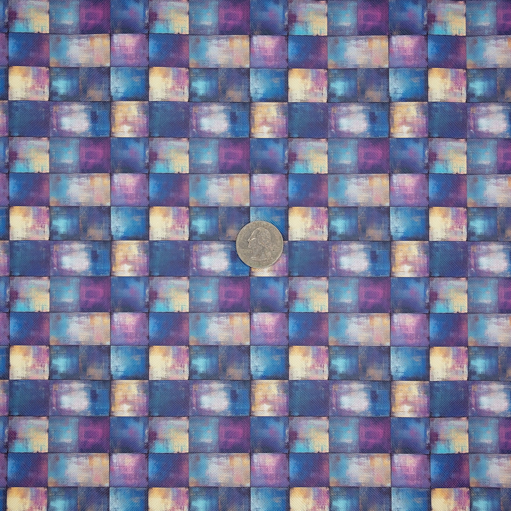 Add bold structure to your next bag project with Misty Weave Saffiano Texture Vinyl. Textured squares blend smoky teal, slate, sand, and dusk purple for a soft woven effect. The crosshatch Saffiano finish adds body, reduces glare, and wipes clean, perfect for everyday bags, wallets, and accessories.