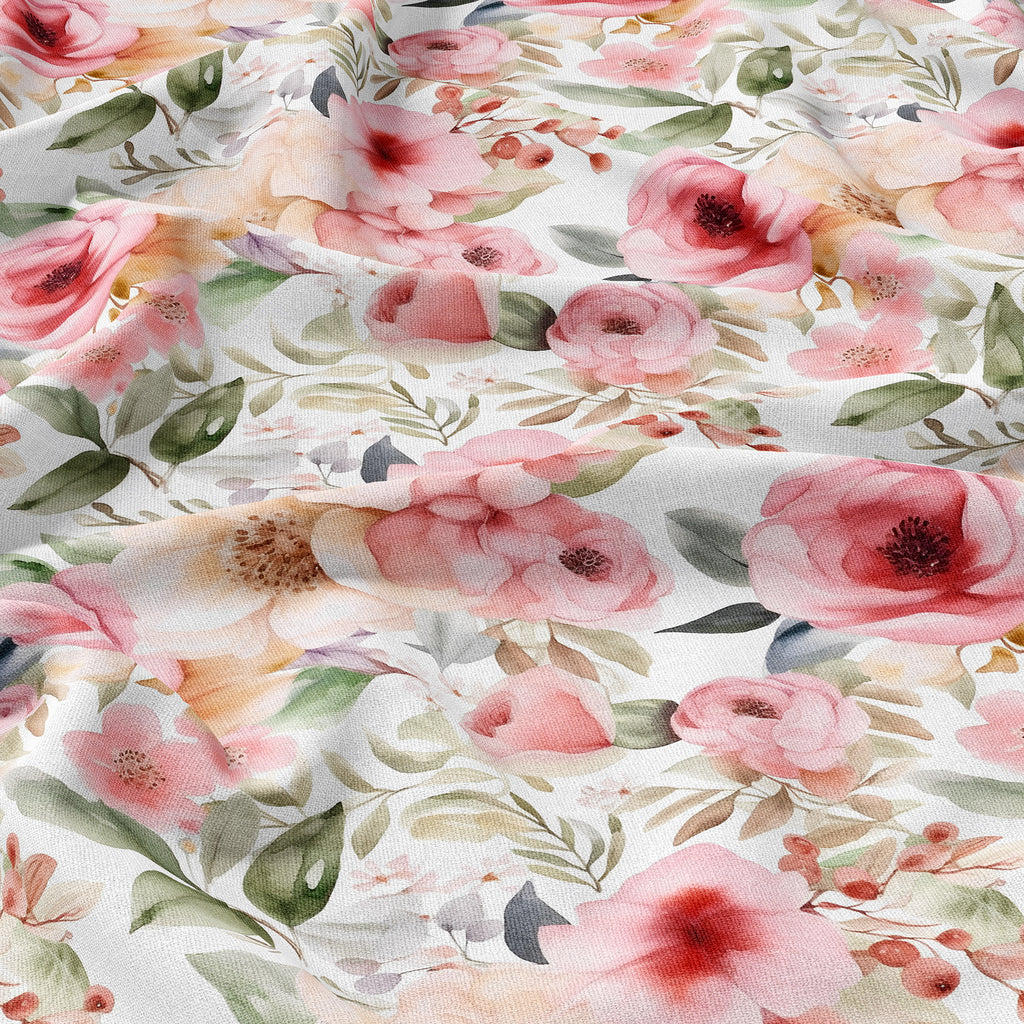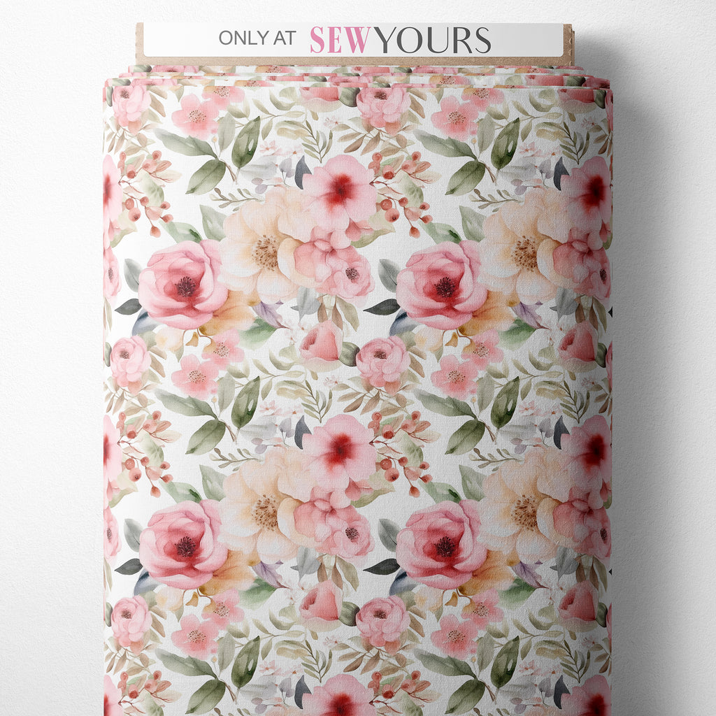 Blush Floral on White – 100% Quilting Cotton Fabric by the Yard