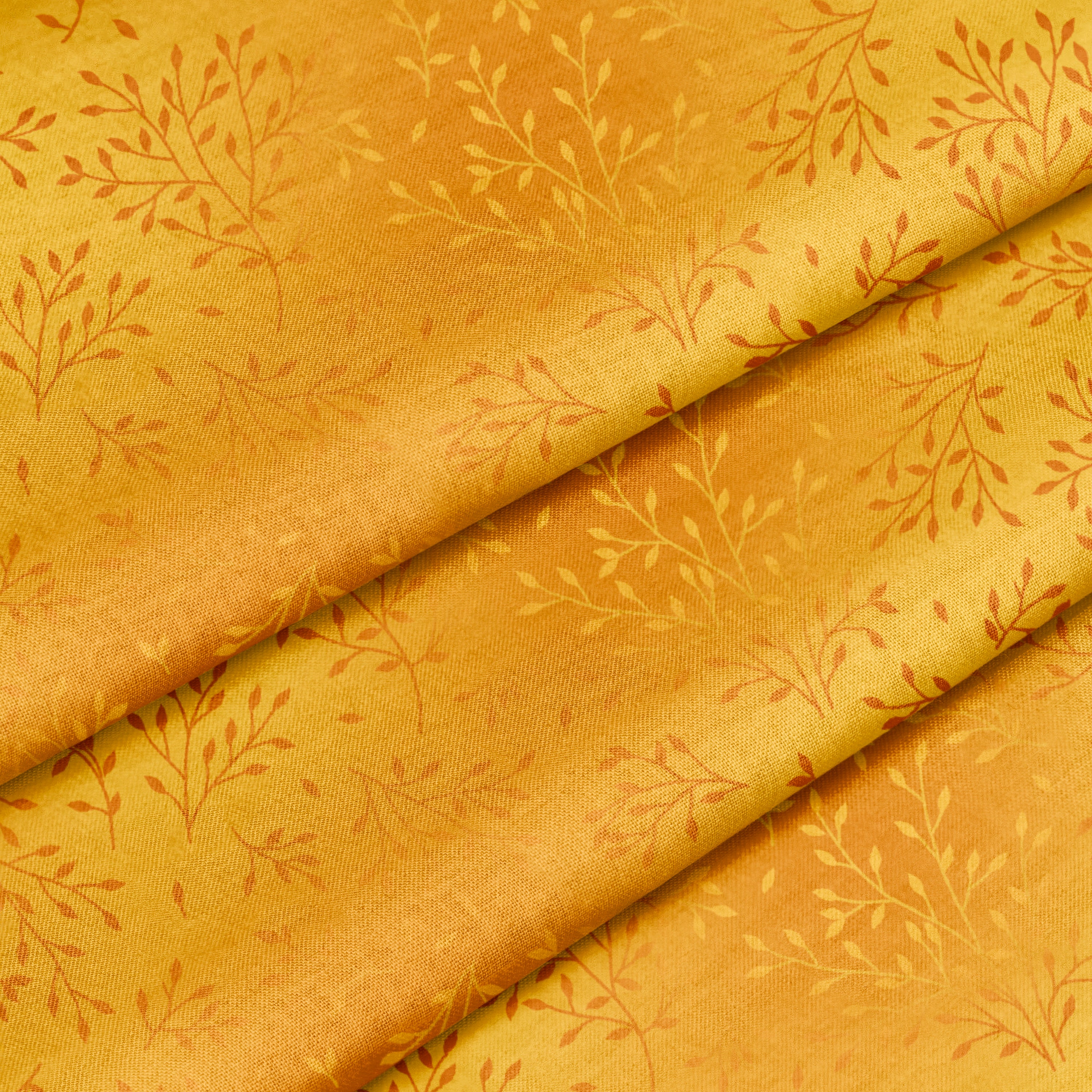Wildsprig – Golden Harvest 100% Quilting Cotton Fabric by the Yard radiates warmth and light. This golden yellow tonal print features soft leafy silhouettes that create a sense of movement and depth. Perfect for quilts, home décor, or handbag linings, it adds a cheerful yet refined touch to any project.