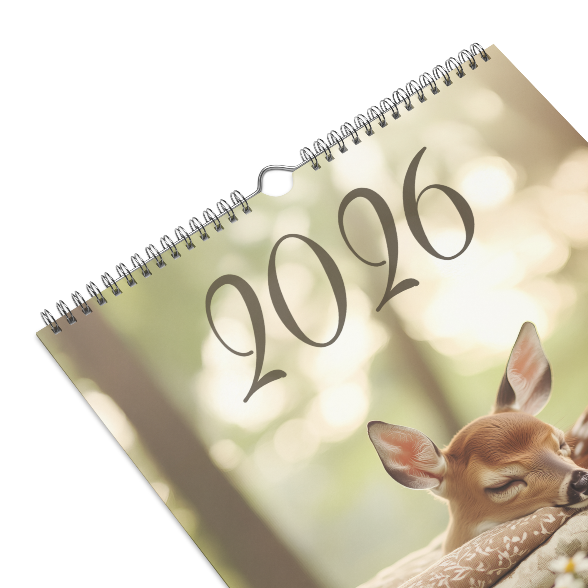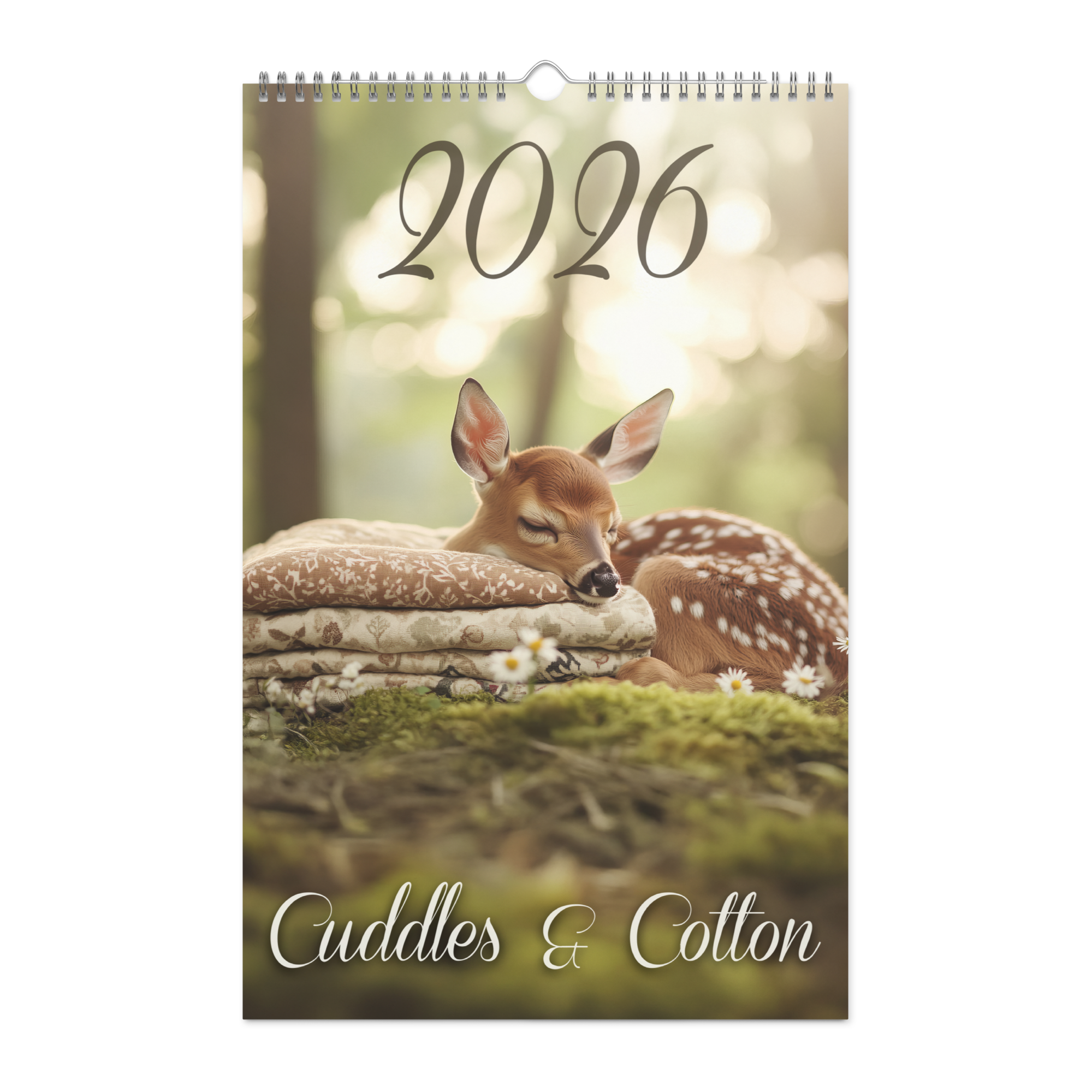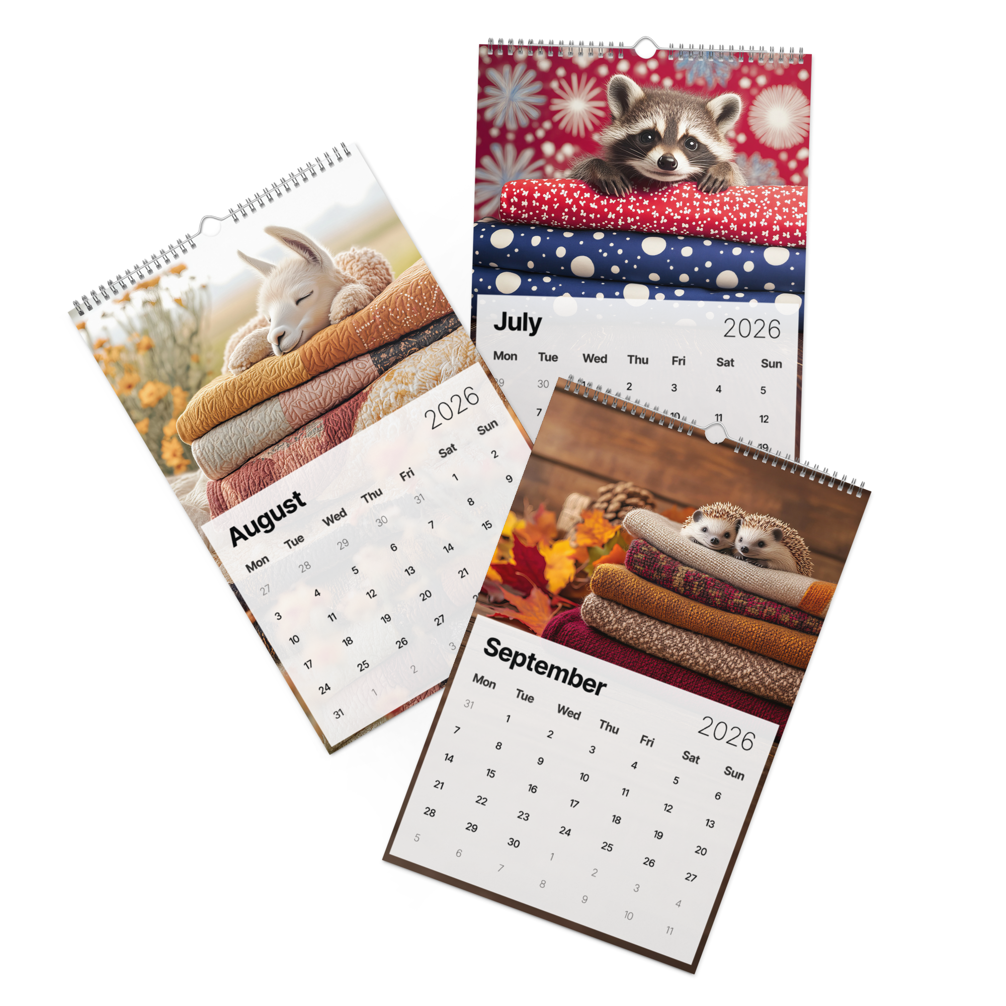 Cuddles & Cotton 2026 Wall Calendar – Cozy Fabric Stacks & Woodland Animals for Sewist