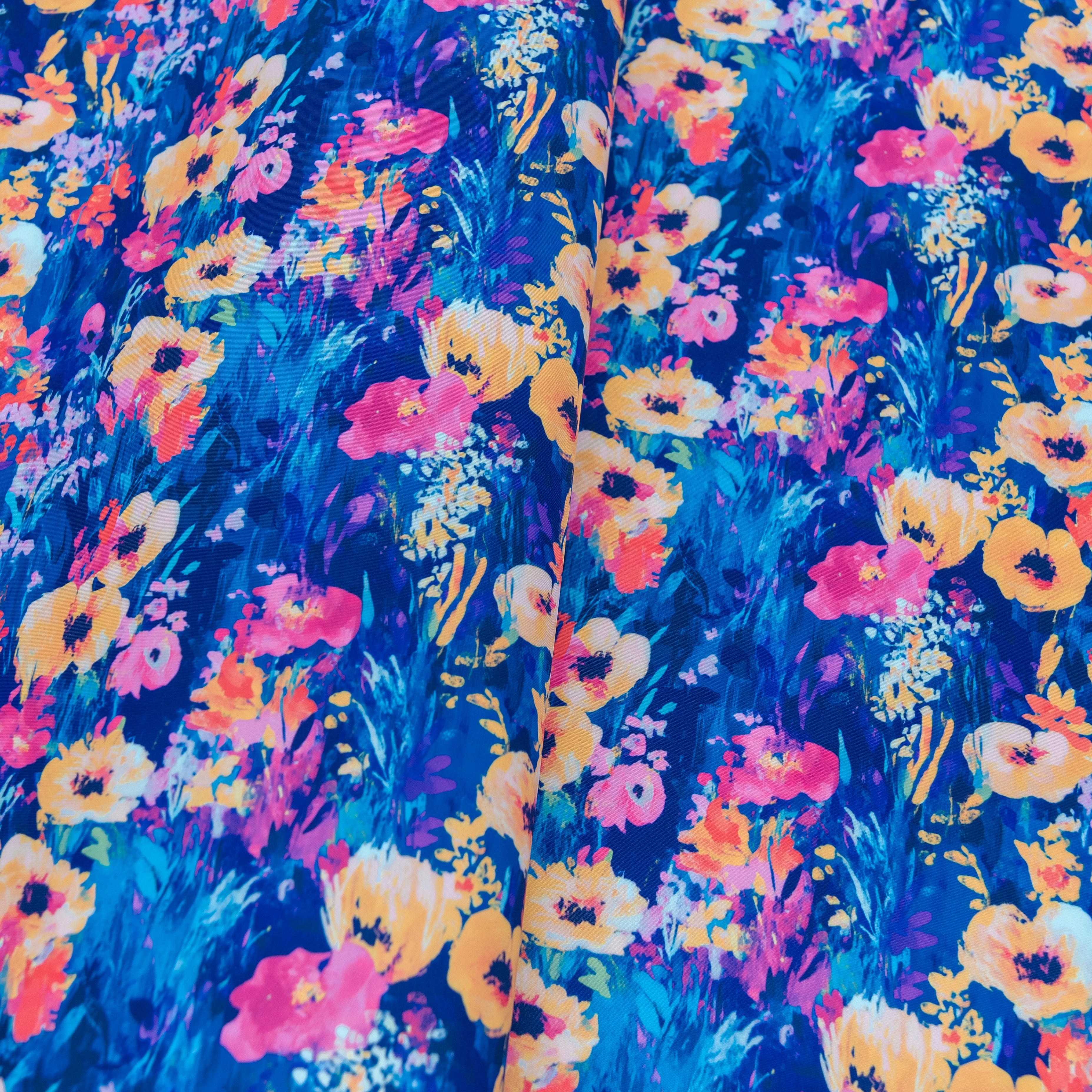 LinerTex™ Floral Rush captures the energy of a wild summer bloom in full color. With its vivid orange, fuchsia, teal, and gold flowers layered on a deep navy base, this print is made for projects that need drama and contrast. Durable and moisture-resistant, it’s as bold in performance as it is in design.