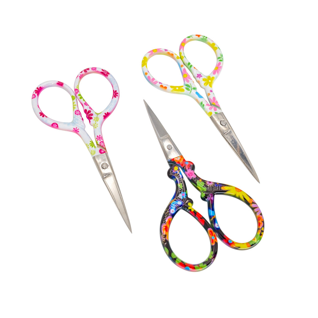 Each pair features stainless steel blades and a floral-printed handle for a cheerful pop of color.