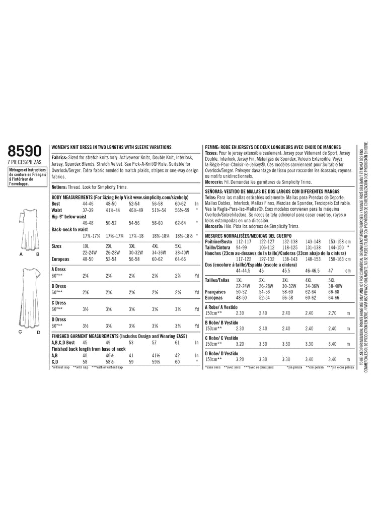 Simplicity S8590 – Women’s Knit Dresses with Sleeve & Length Variations Sewing Pattern (Plus Sizes 1X–5X)