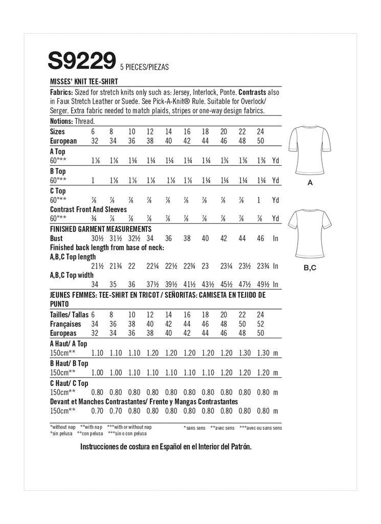 | Pattern Name | Simplicity S9229 Misses’ Knit Tee Shirt |