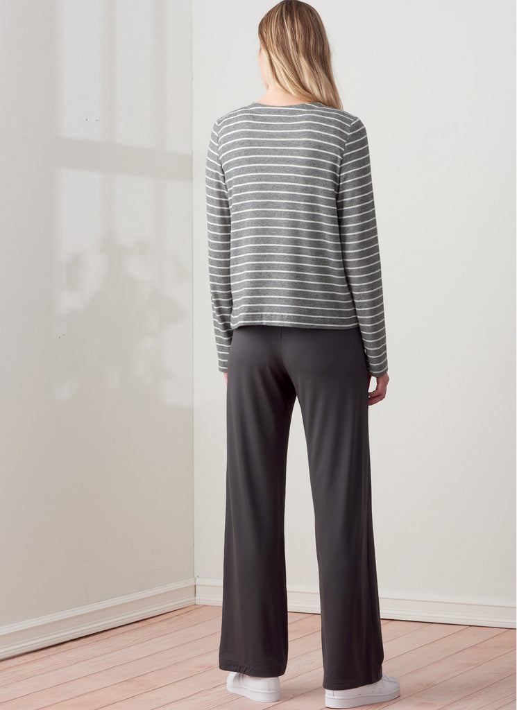 | Views Included | A sleeveless top, B button-front cardigan, C wide-leg pants with elastic & ties |