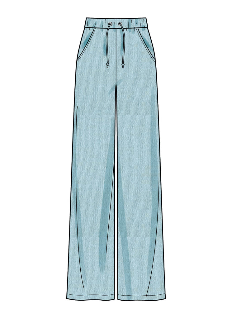 Simplicity S9272 Misses’ Knit Cardigan, Top & Pants is a versatile sewing pattern designed for stretch knits. Create a complete knit wardrobe with three pieces: a sleeveless scoop-neck top, a button-front cardigan, and wide-leg pull-on pants with elastic waistband and ties. Perfect for casual wear or layering.