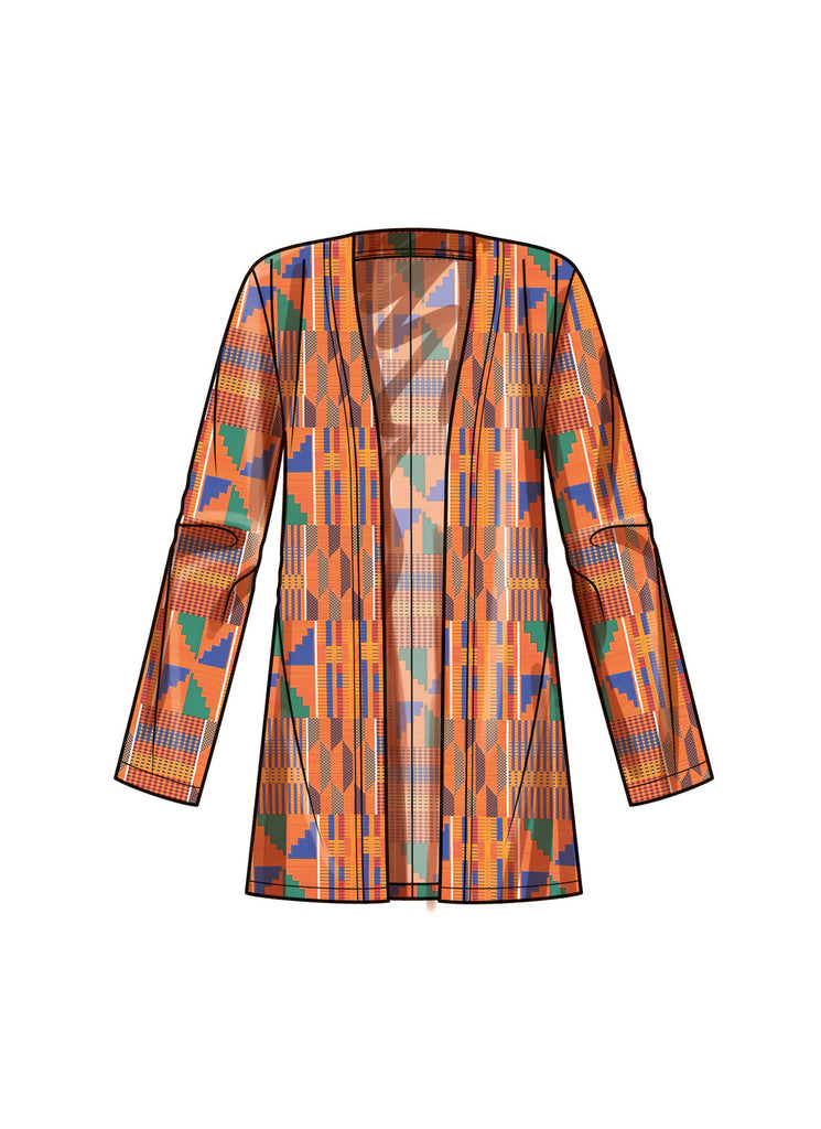 | Views Included | View A: sleeveless knit tank; View B: knit pencil skirt with self-tie belt; View C: long duster cardigan with long sleeves; View D: mid-length cardigan with long sleeves |