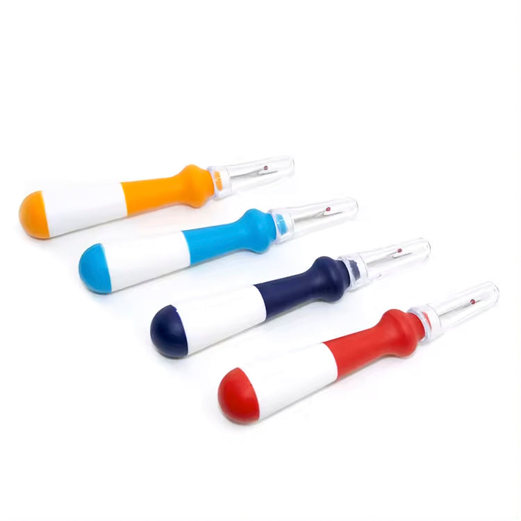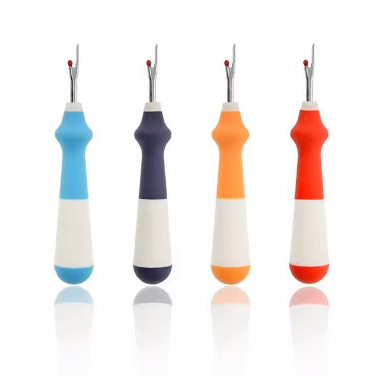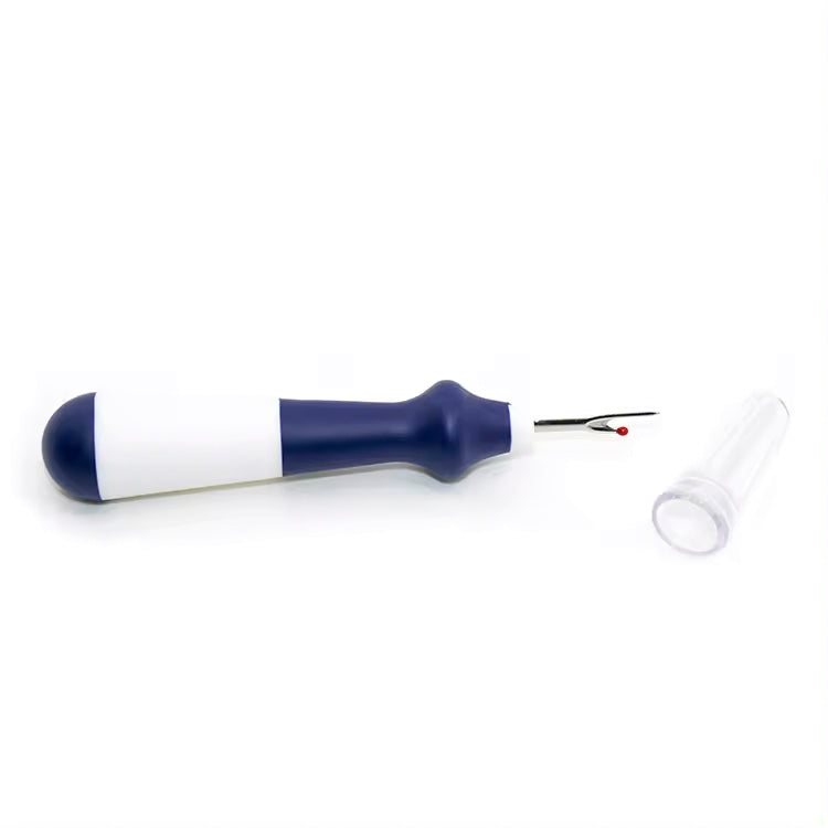 This seam ripper boasts a comfortable grip and comes in a variety of colors: orange, blue, navy, and red & yellow..