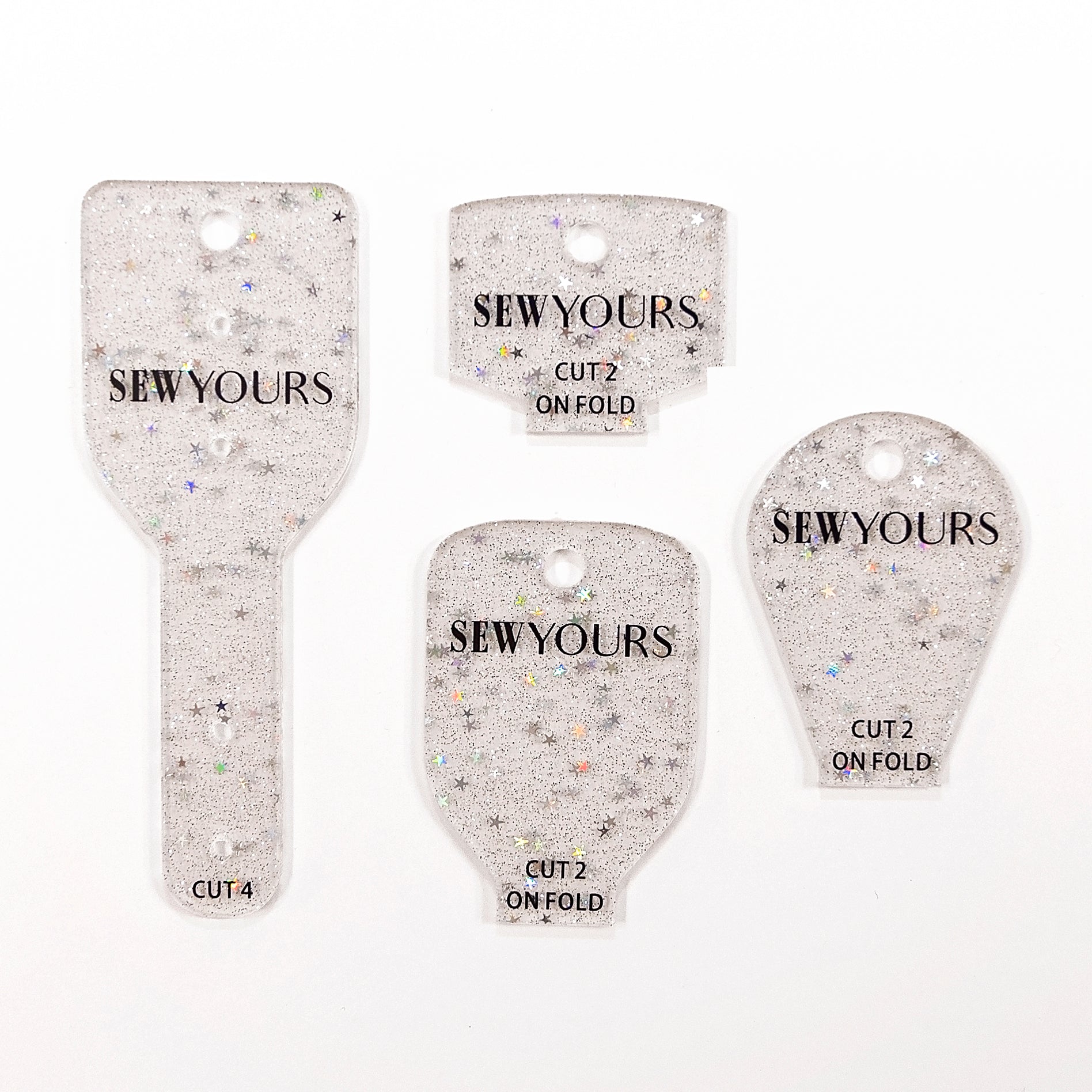 Elevate your webbing crossbody straps with our Strap End Acrylic Templates. One set includes 4 shapes and a ball chain to keep the set together.