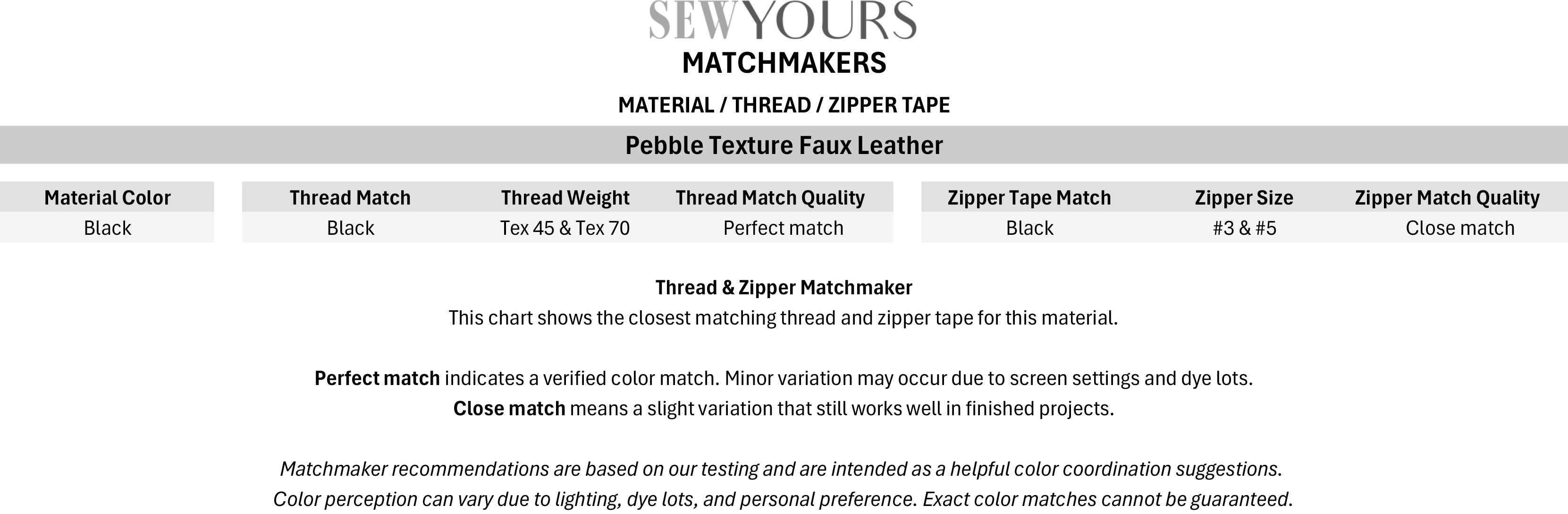 Add style and texture to your bag-making projects with our Pebble Texture Faux Leather. This soft, supple faux leather is perfect for creating on-trend slouchy bags like hobo bags, totes, and casual carryalls. The Uptown Swing Sewing Pattern was designed specifically for this fabric.