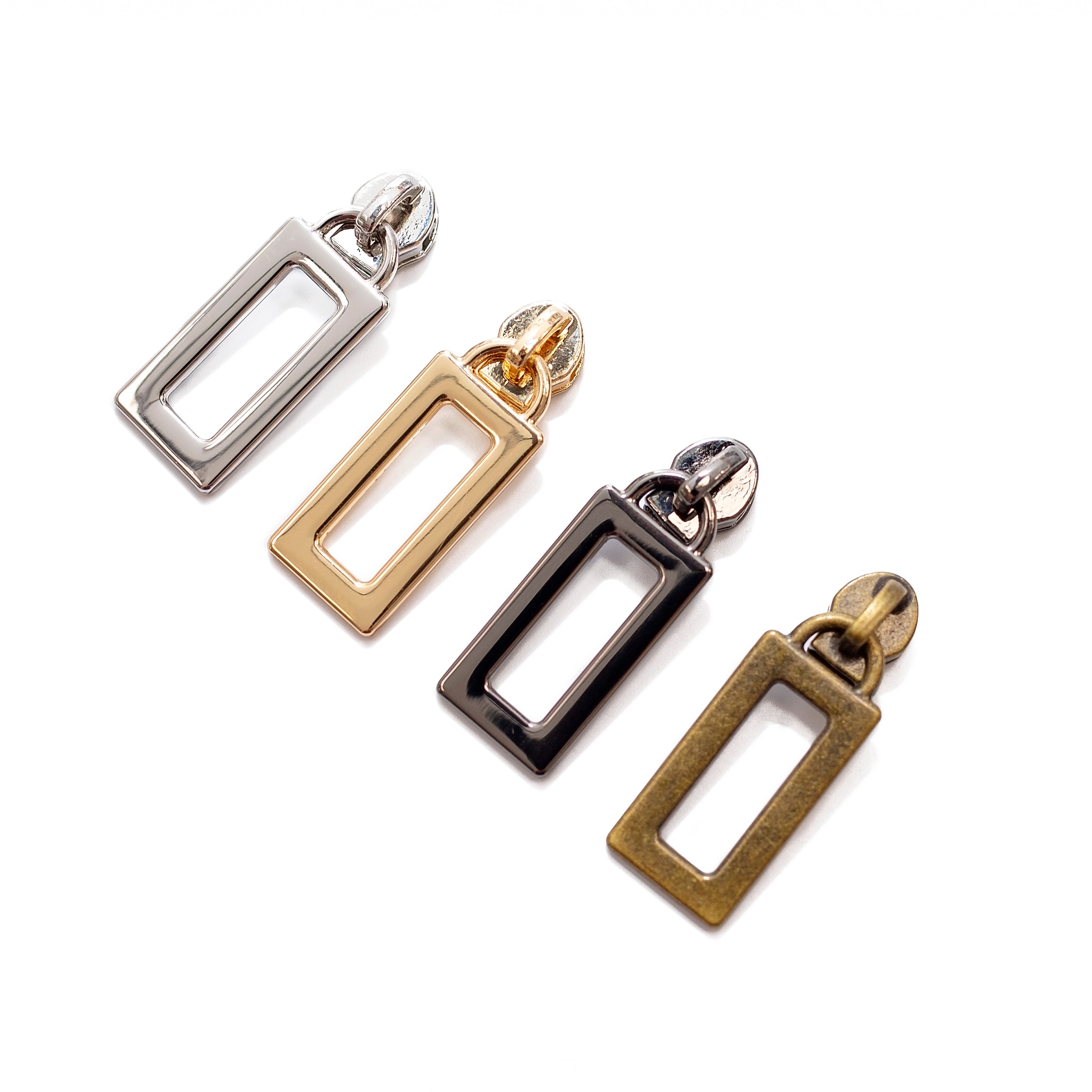 Give your bags a sleek, modern finish with these rectangle #3 zipper pulls, designed for a polished and professional look.