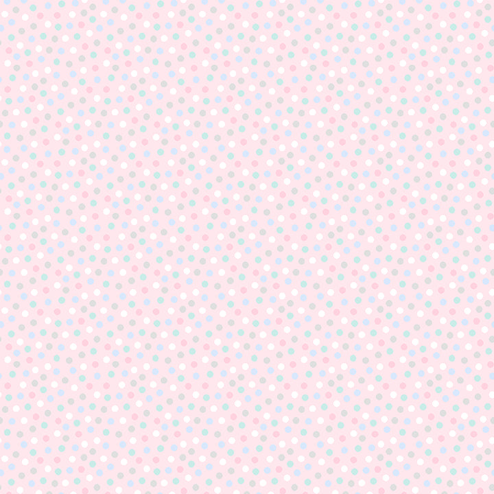 This soft light pink flannel features a delicate all-over dot pattern in pastel pink, blue, and mint. Perfect for baby quilts, receiving blankets, and sweet nursery sewing projects.