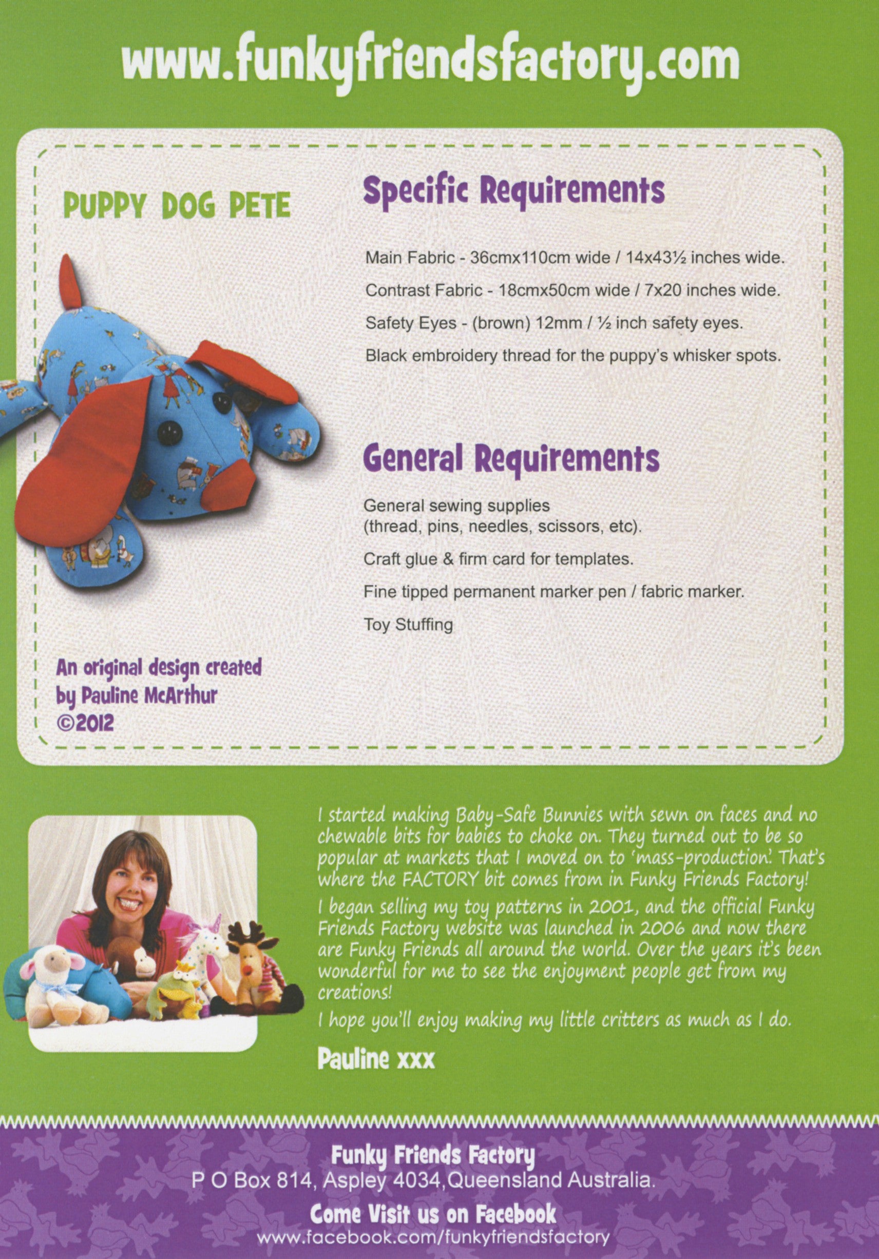Customize your Puppy Dog Pete with different fabrics, colors, and embellishments to make each creation unique. Whether you're sewing for a child, a pet lover, or just for fun, this pattern is a delightful project for any crafter.