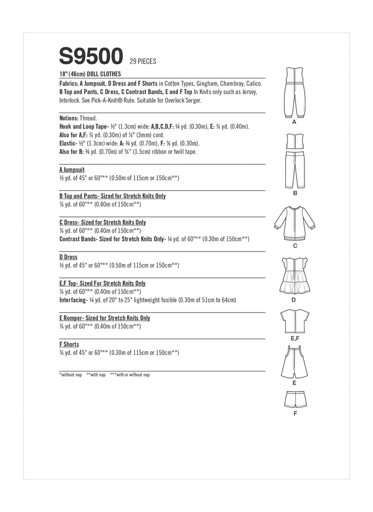 Simplicity S9500 – 18" Doll Clothes Wardrobe Sewing Pattern