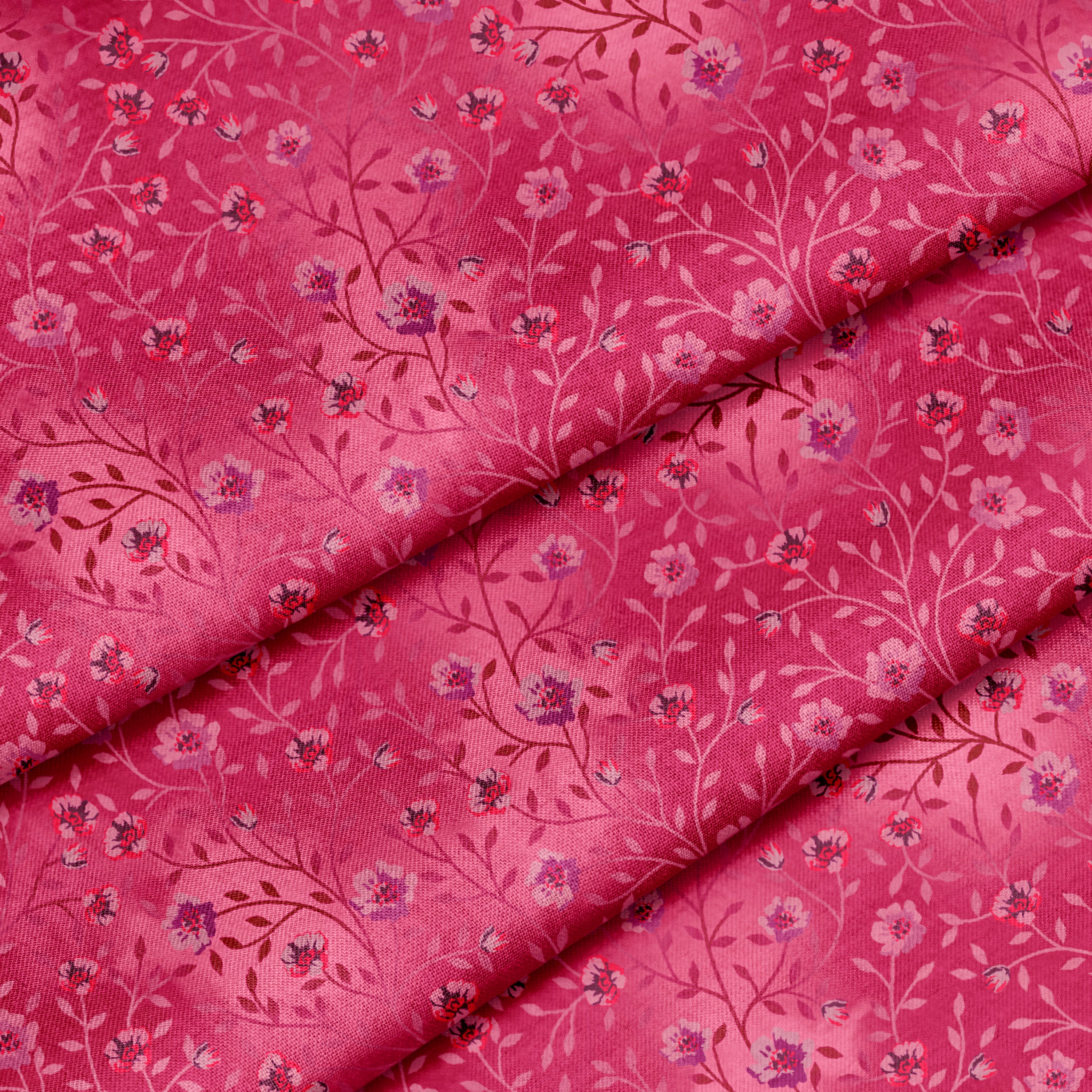 Petalfall – Mulberry Bloom 100% Quilting Cotton Fabric by the Yard blends deep rose and plum tones with delicate leafy vines and soft watercolor shading. The tonal depth gives this print a rich, elegant look that works beautifully for handbags, quilts, and statement fabric pairings in your next project.