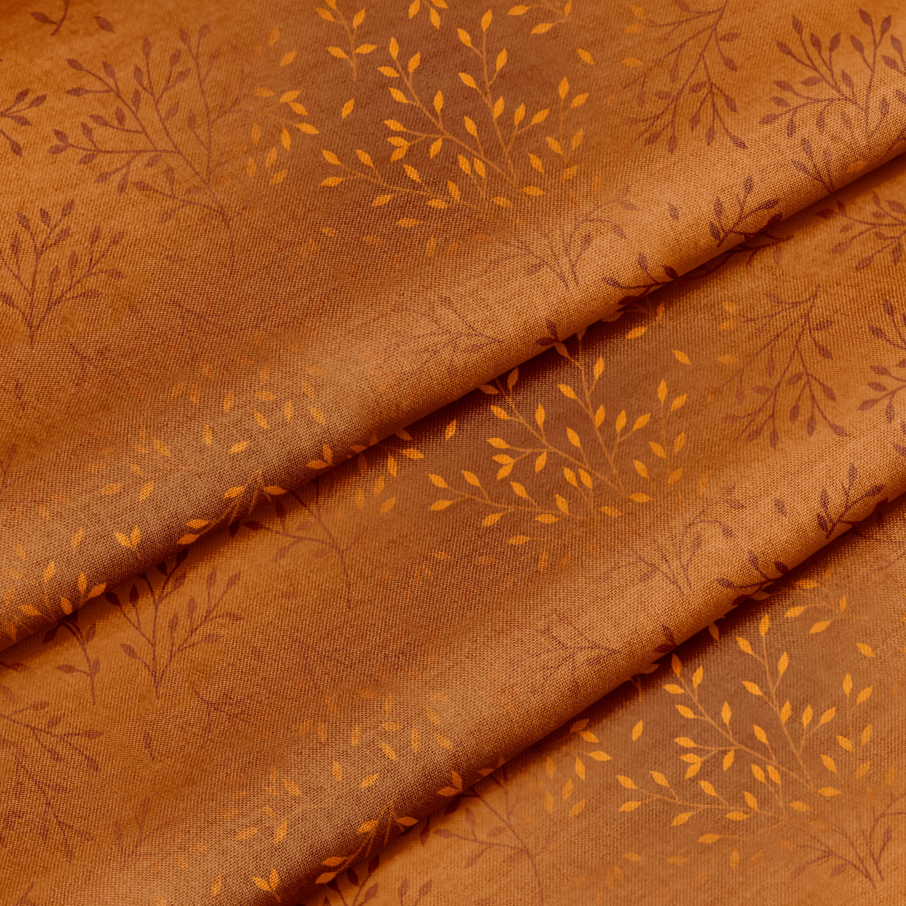 Wildsprig – Rustic Copper 100% Quilting Cotton Fabric by the Yard brings the glow of autumn warmth to your sewing projects. Its rich coppery-orange base is layered with tonal leafy branches, creating an inviting and organic texture. Ideal for fall quilts, handbags, and home décor, this print adds earthy sophistication and cozy charm to any design.