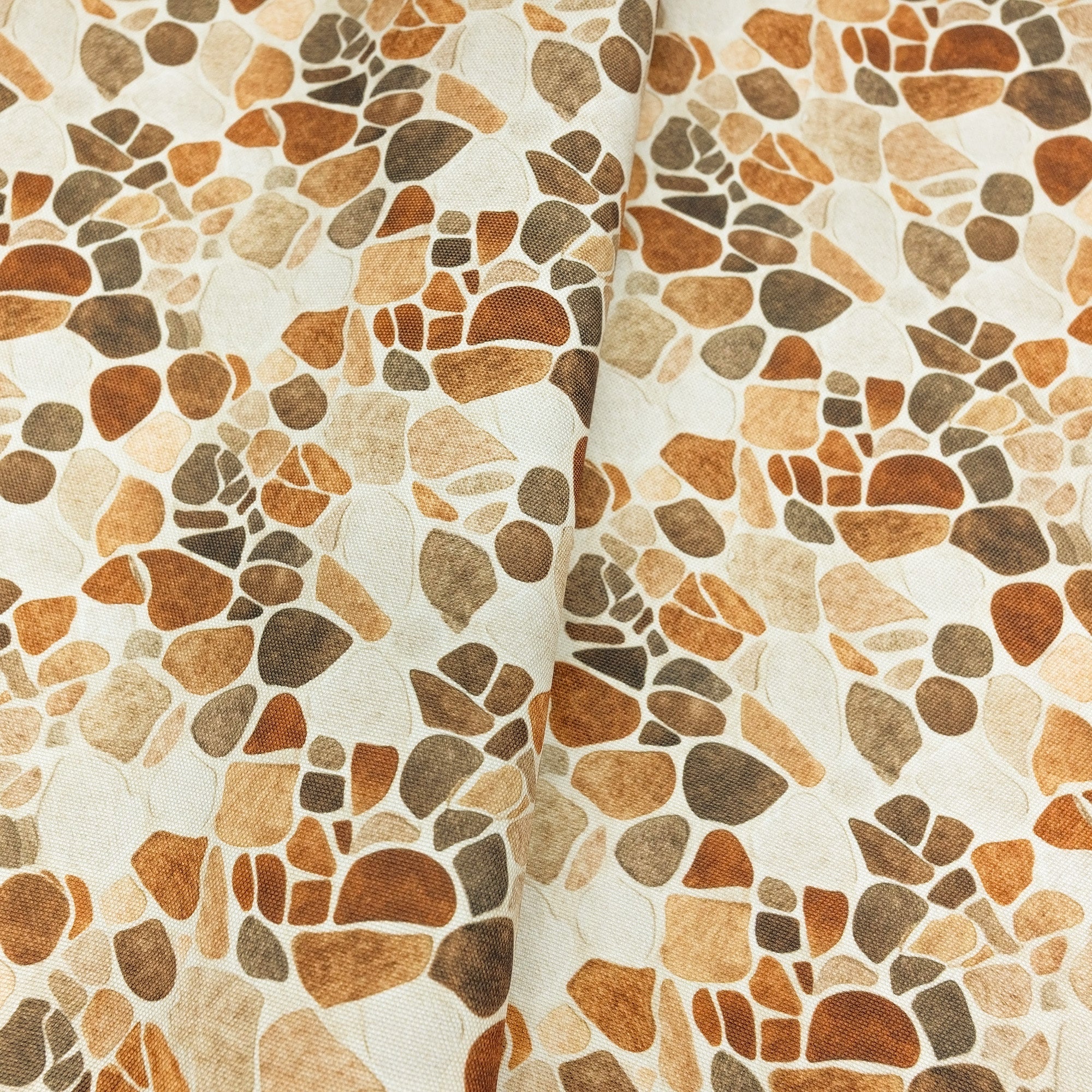 Earthy and wild, Safari Stone Water-Resistant Canvas captures the look of natural stone with a soft animal hide effect in warm camel, chestnut, and cream tones. The organic pattern brings rustic texture and visual depth to handmade bags, evoking the warmth of the savanna. Made from 600 denier PU-coated polyester, it offers structure and moisture resistance—no interfacing needed for most bag projects.