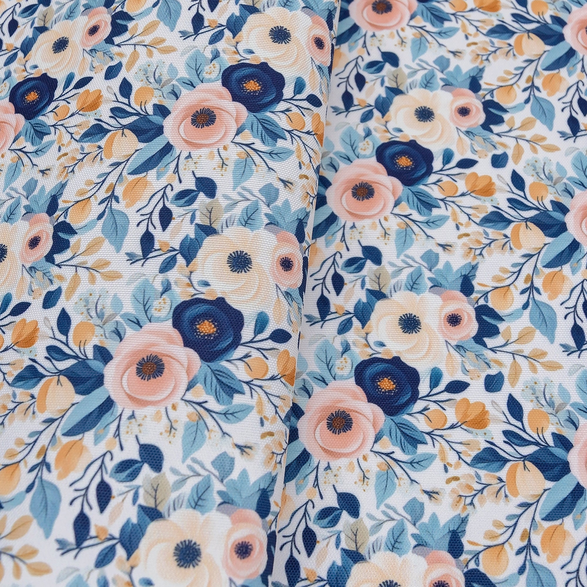 Timeless and refined, Antique Garden Water-Resistant Canvas showcases soft blush, navy, and cream florals set against a warm ivory background. The vintage botanical style is perfect for creating elegant tote bags, pouches, or organizers with lasting charm. Made from durable 600 denier polyester with a PU coating, this canvas offers structure and water resistance without the need for interfacing.
