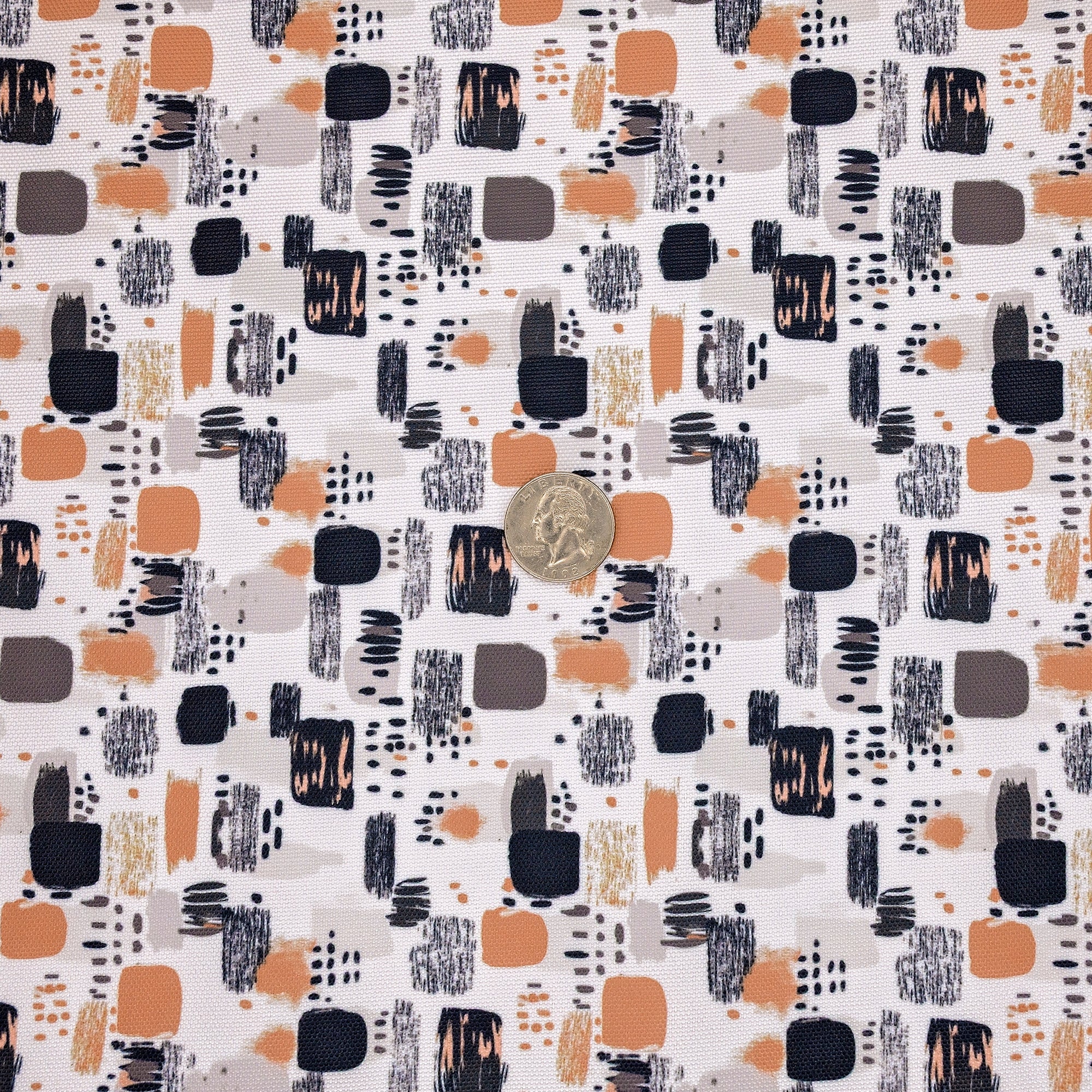 Vibrant and modern, Clay Marks Water-Resistant Canvas showcases a gallery of abstract brush-stroke blocks in earthy terracotta, sandstone, taupe, and charcoal on a warm cream ground. These organic “clay mark” textures give any project a contemporary, handcrafted vibe. Crafted from 600 denier PU-coated polyester, it offers durable structure and moisture resistance without requiring interfacing.