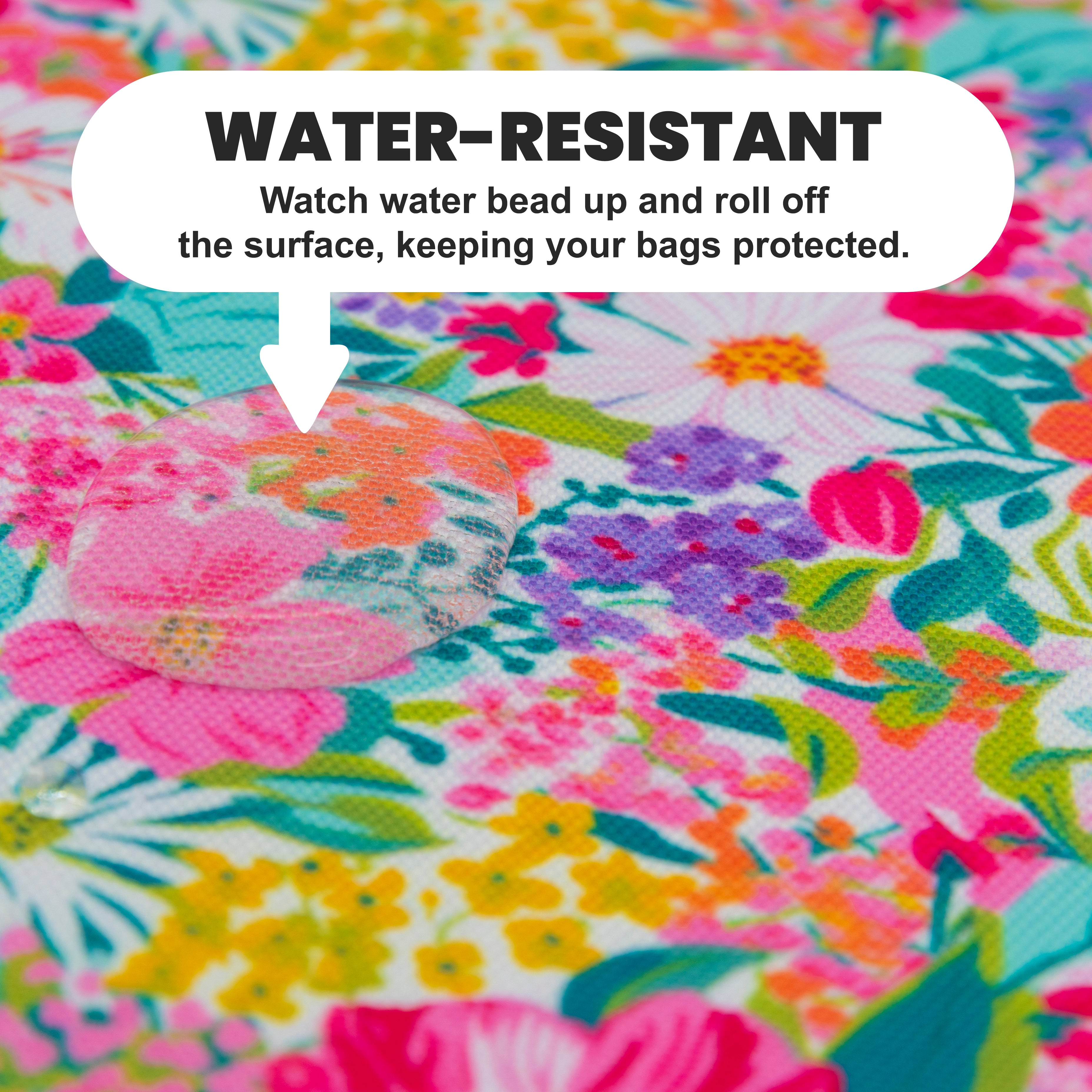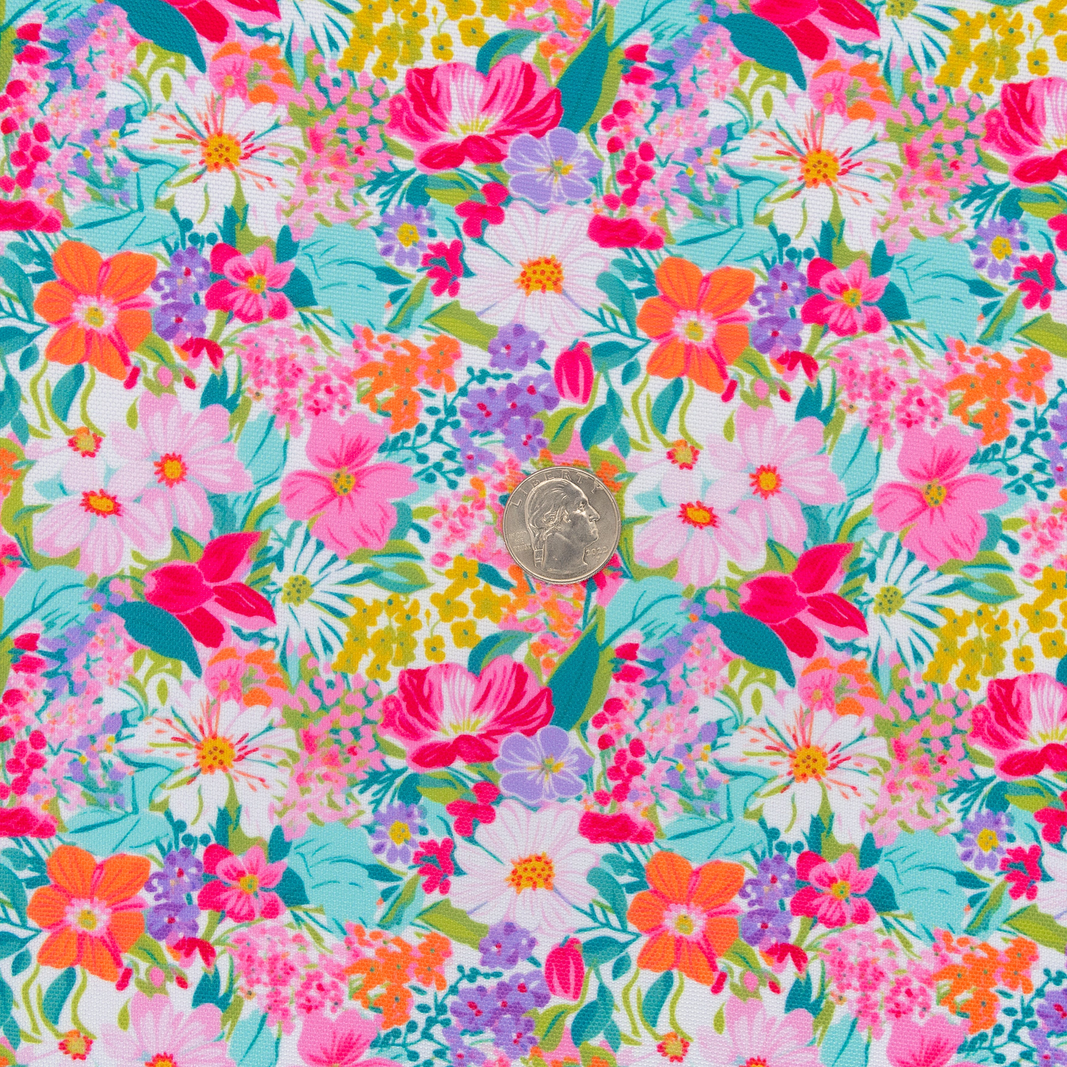 Bring vibrant floral energy to your bag-making projects with Garden Party Water-Resistant Canvas. This cheerful print features a lush garden of colorful flowers in shades of pink, orange, yellow, purple, and green. Perfect for creating lively, eye-catching bag exteriors and linings, this 600 denier polyester canvas with a PU coating offers excellent durability and water resistance.