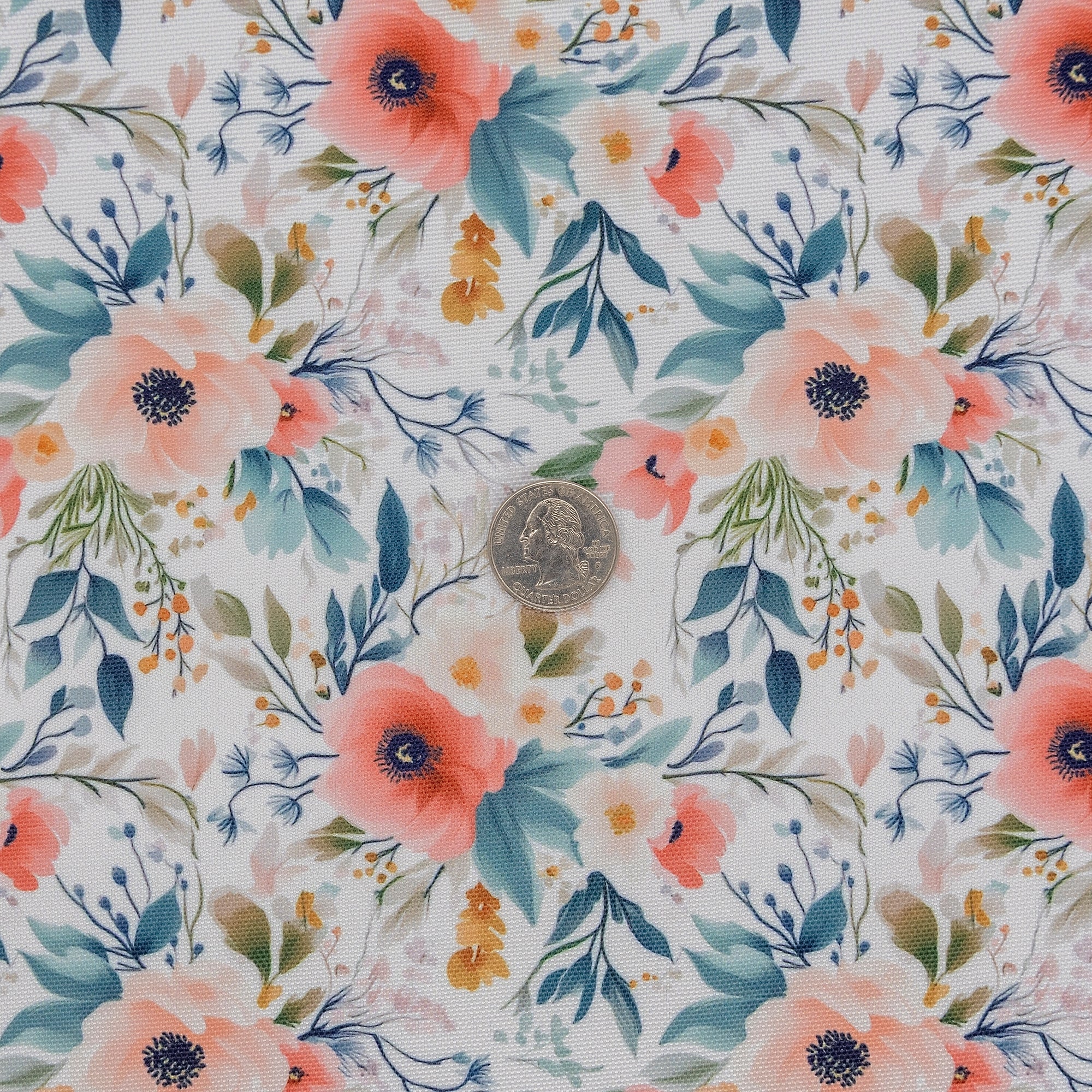 Light and serene, Pastel Breeze Water-Resistant Canvas features muted peach and cream blooms with olive green accents on a soft ivory base. The neutral palette suits everyday bags with a subtle, sophisticated feel. Built from 600 denier PU-coated polyester canvas, it’s water-resistant and holds its shape—no interfacing necessary.