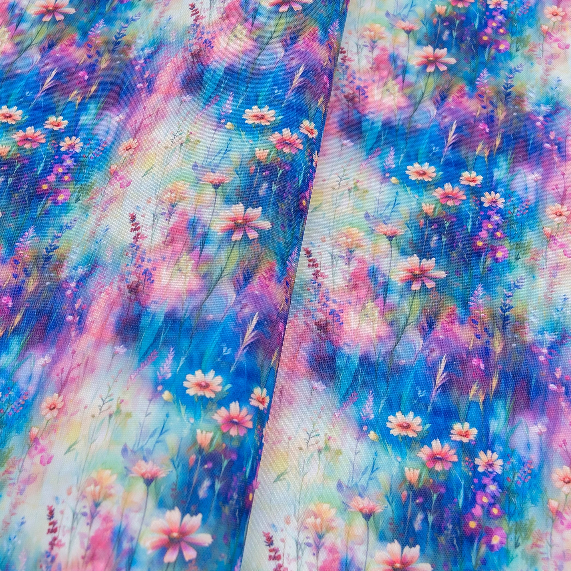 Soft and wild, Purple Prairie Water-Resistant Canvas features a field of delicate wildflowers in lavender, cream, blush, and gold tones over a dreamy watercolor backdrop. This romantic design is perfect for bags with a whimsical or nature-inspired feel. The 600D PU-coated canvas provides strength without needing interfacing.