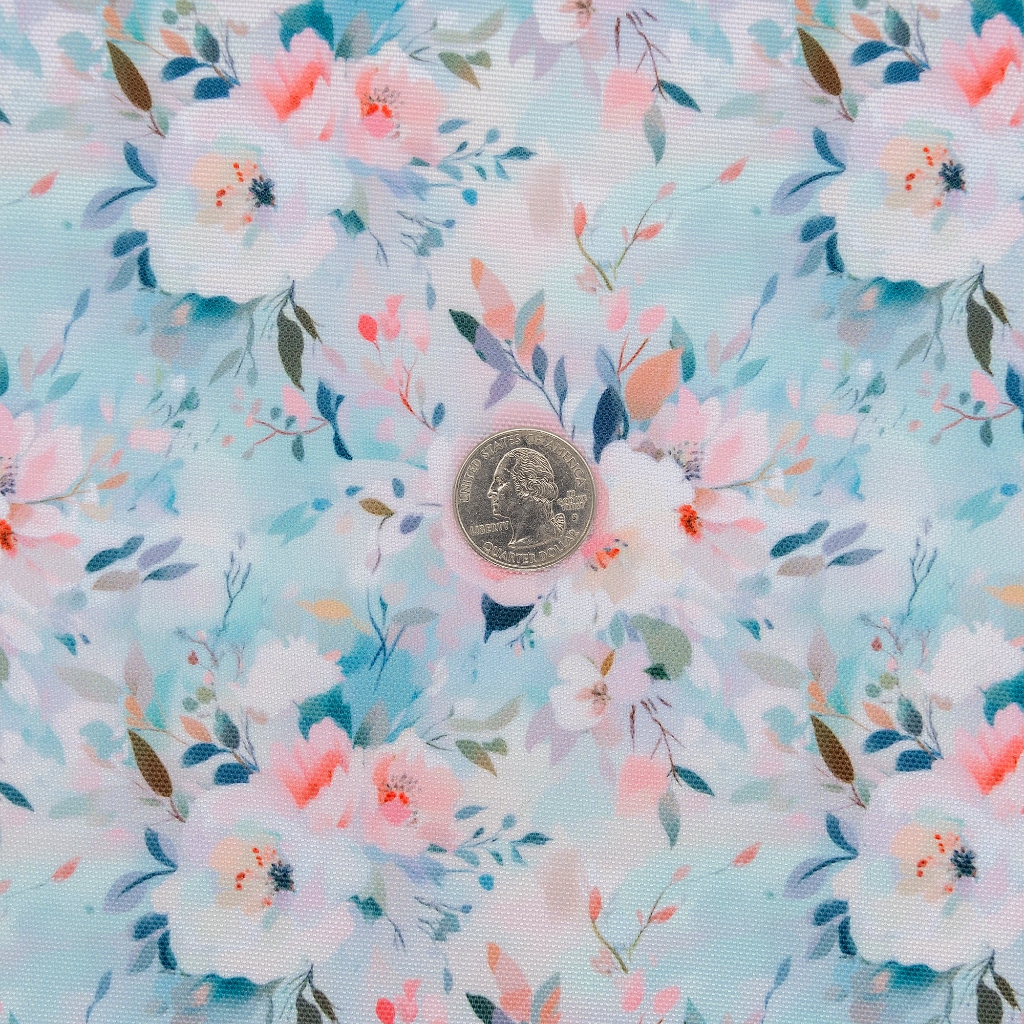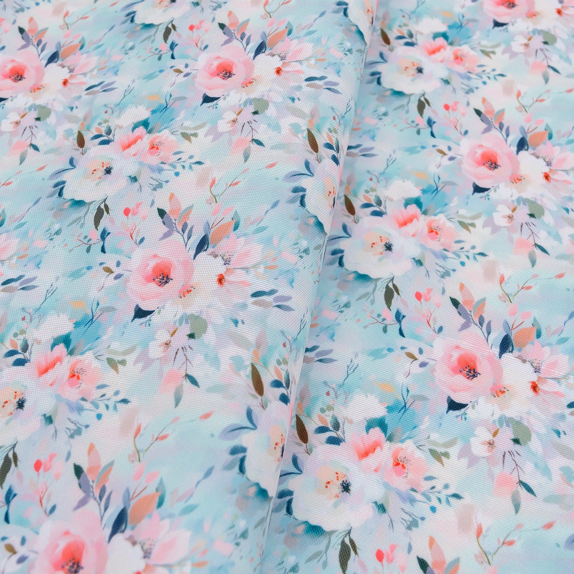 Delicate and airy, Romantic Pastels Water-Resistant Canvas features soft roses in blush, ivory, and mint over a pale background. With its gentle palette and flowing design, this fabric adds elegance to any bag project. It’s durable, structured, and water-resistant thanks to the 600 denier PU-coated polyester.