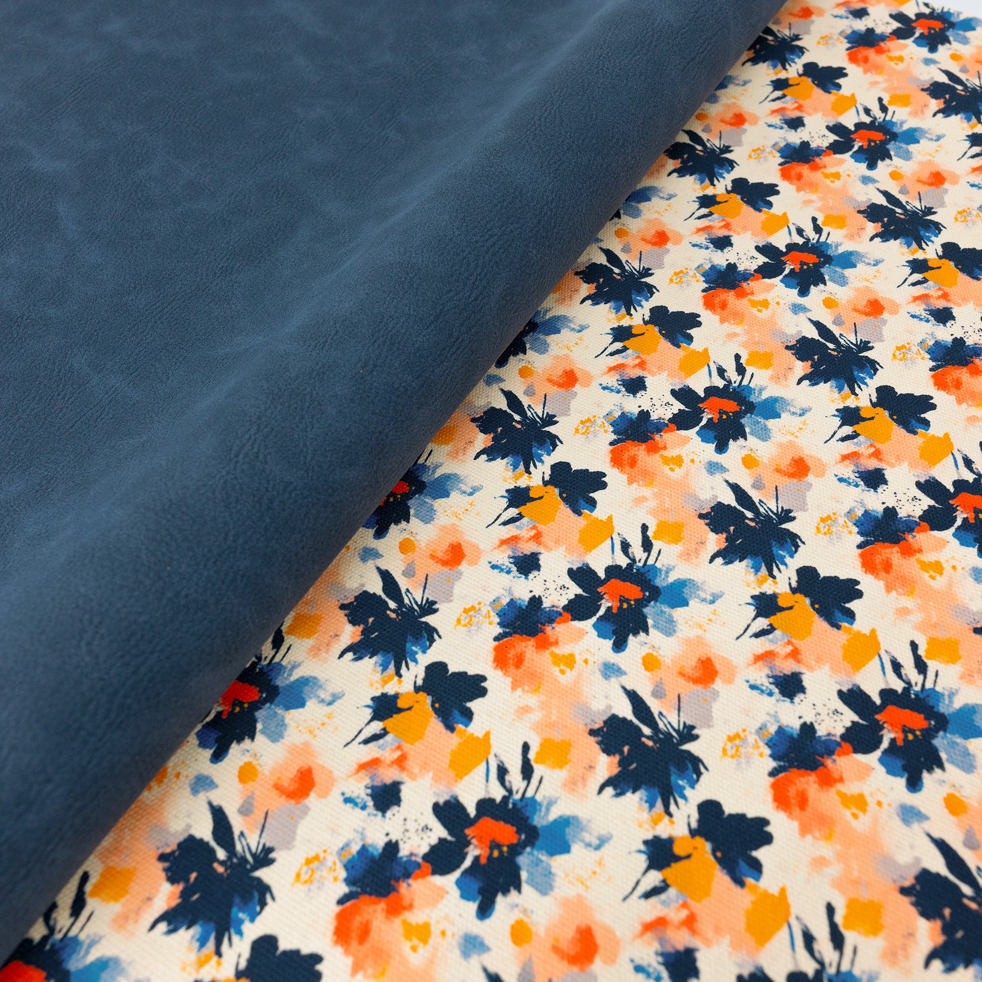 Indigo Color Splash Fabric Bundle for bag making blends deep, inky tones with expressive pops of color for a bold yet wearable finish. This curated pairing combines rich navy Harrison Suede™ with the Indigo Color Splash water-resistant cotton canvas lining, creating a confident, modern look that works beautifully for everyday handbags, totes, and statement accessories.