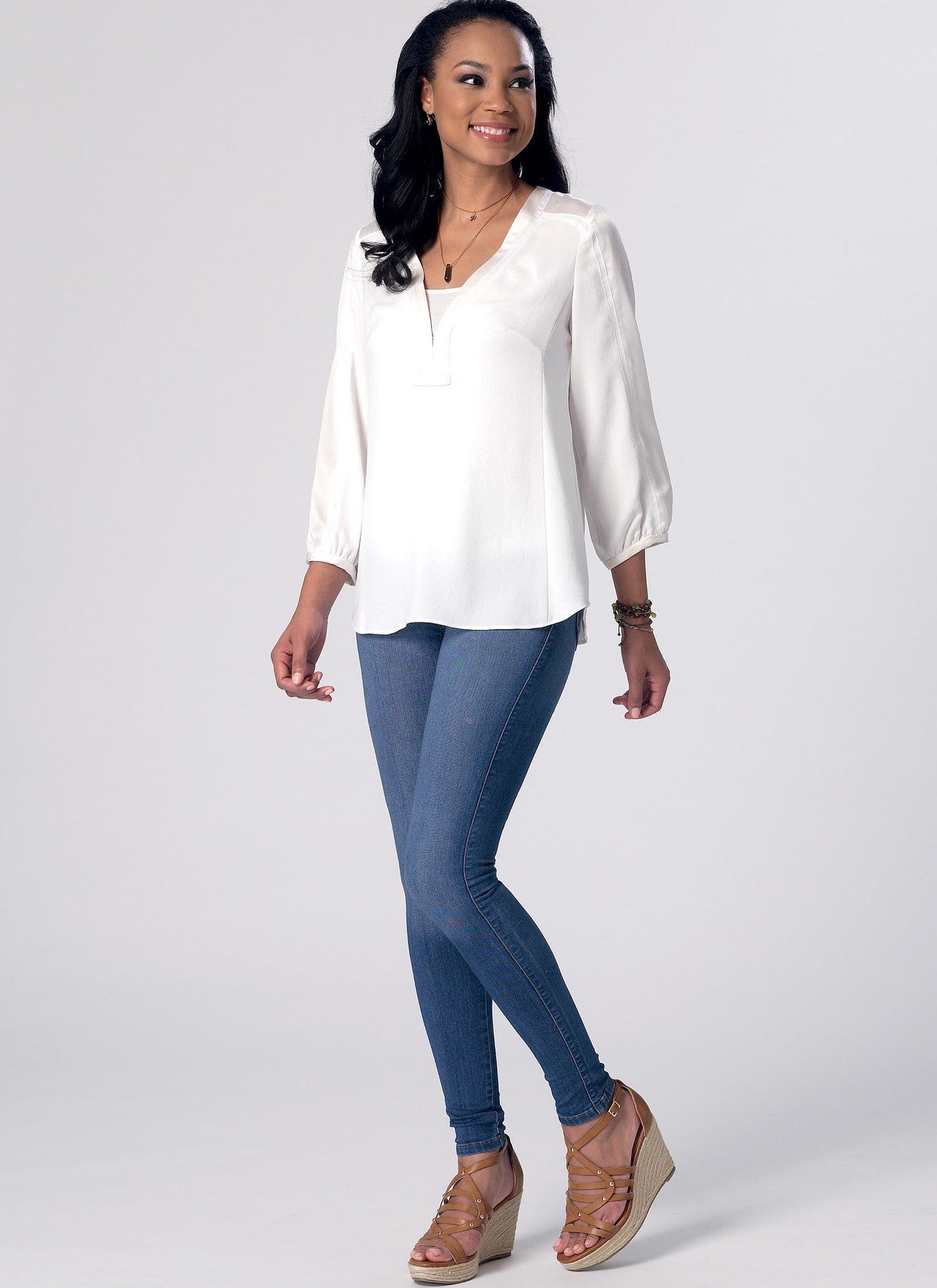 | Pattern Name | McCall’s M7357 Misses’ Banded Tops with Yoke |