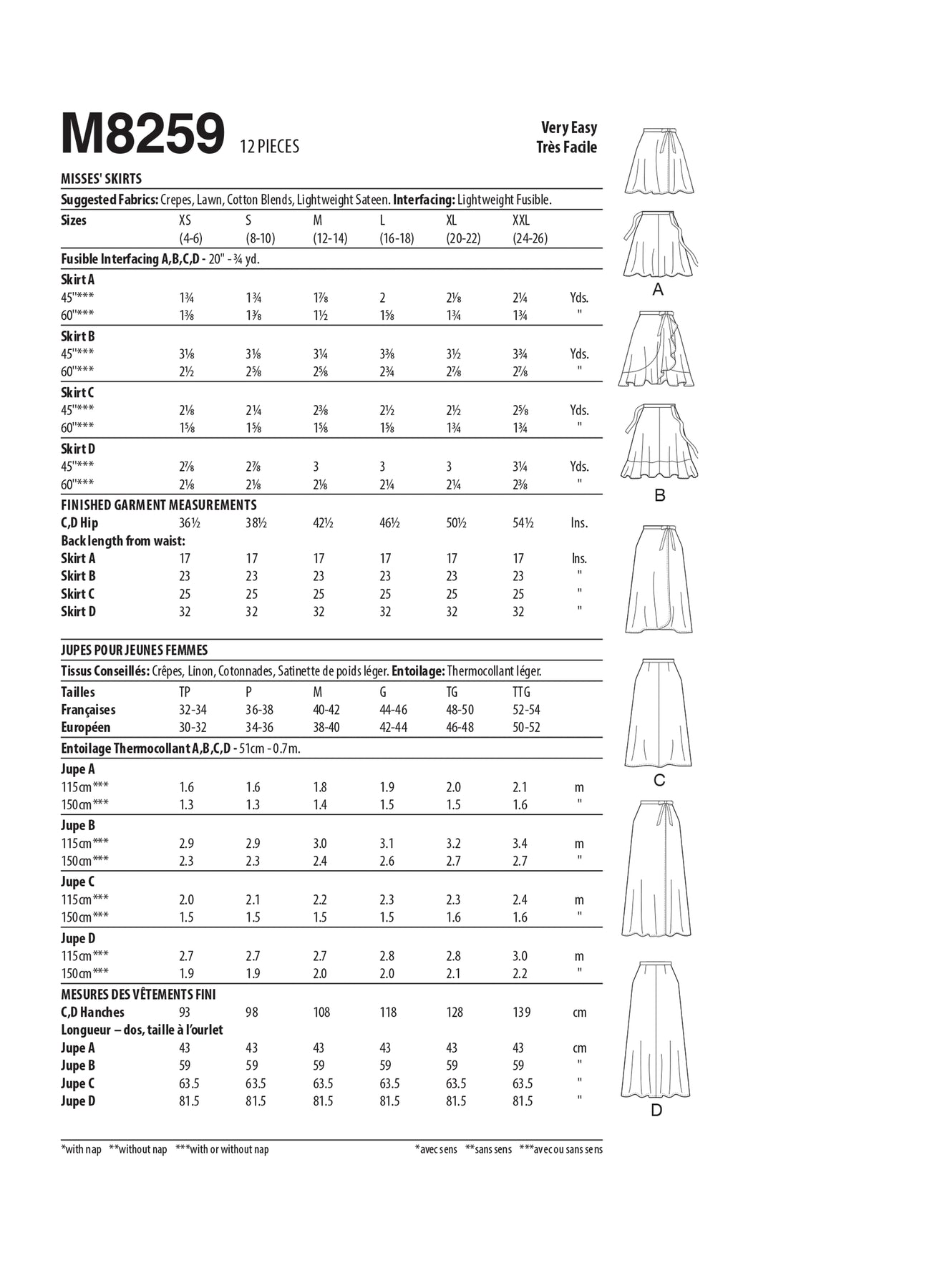 | Pattern Name | McCall’s M8259 – Misses’ Wrap Skirts |