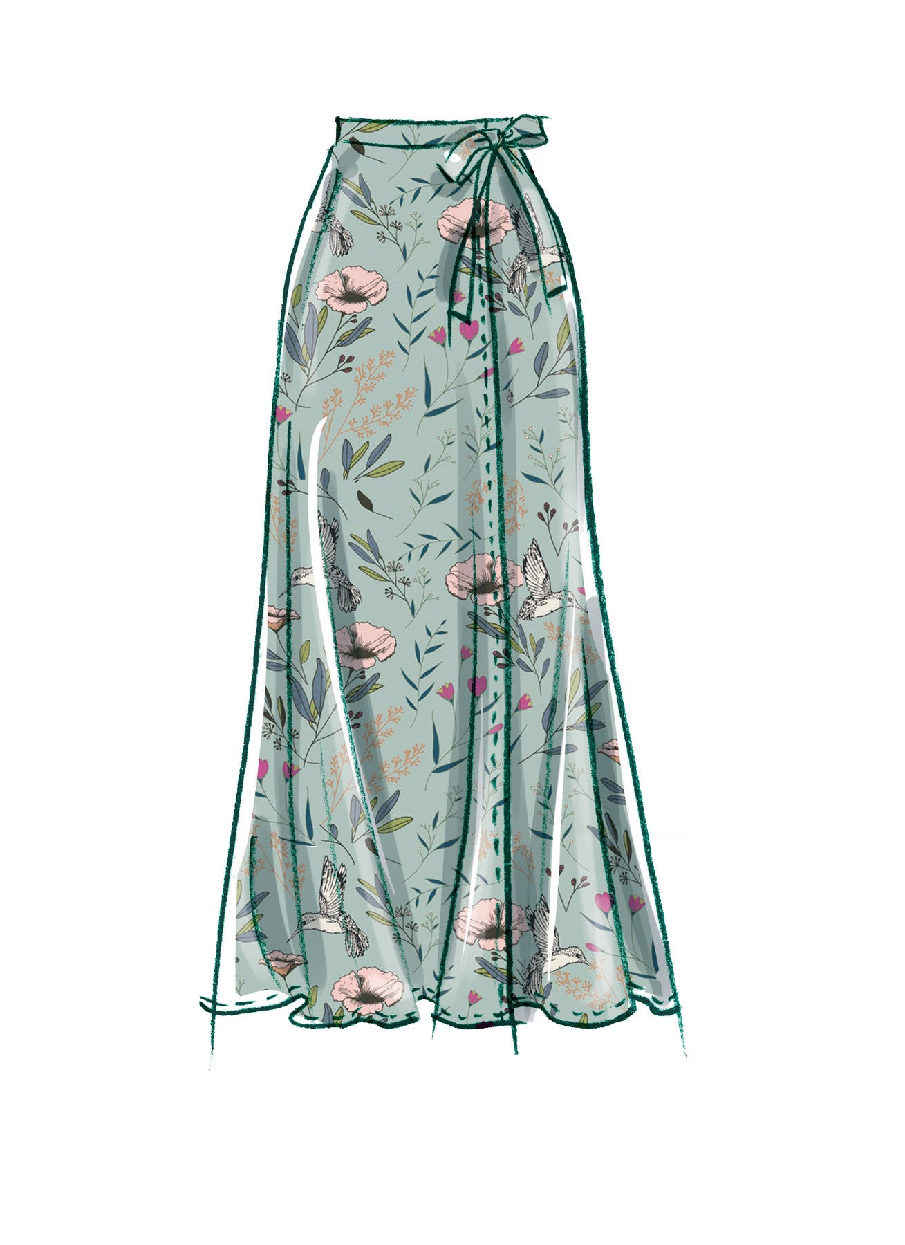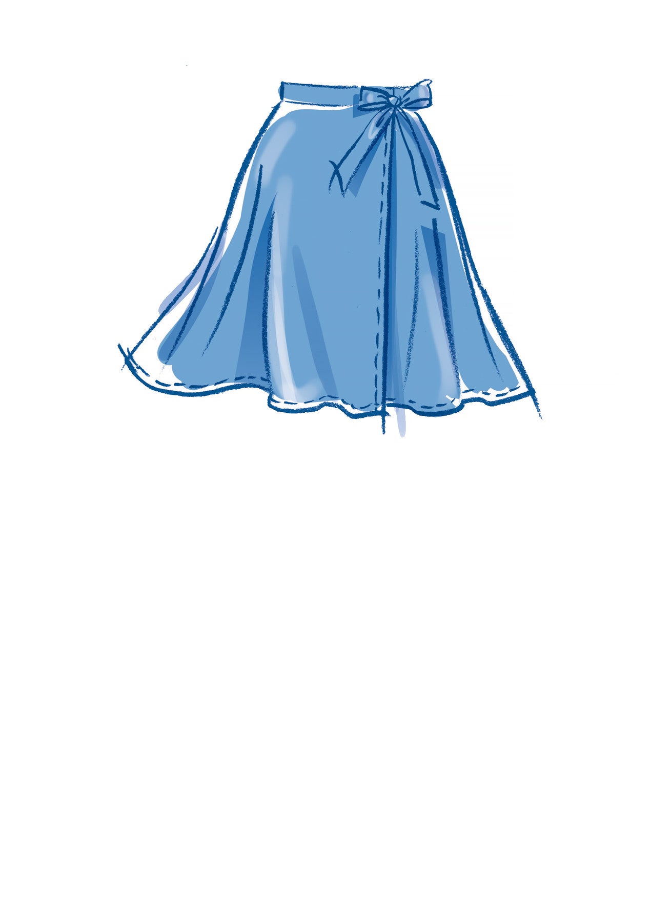 | Views Included | Wrap skirt, Views A–D: A above knee, B above knee with flounce, C below knee with curved hem, D lower-calf length |