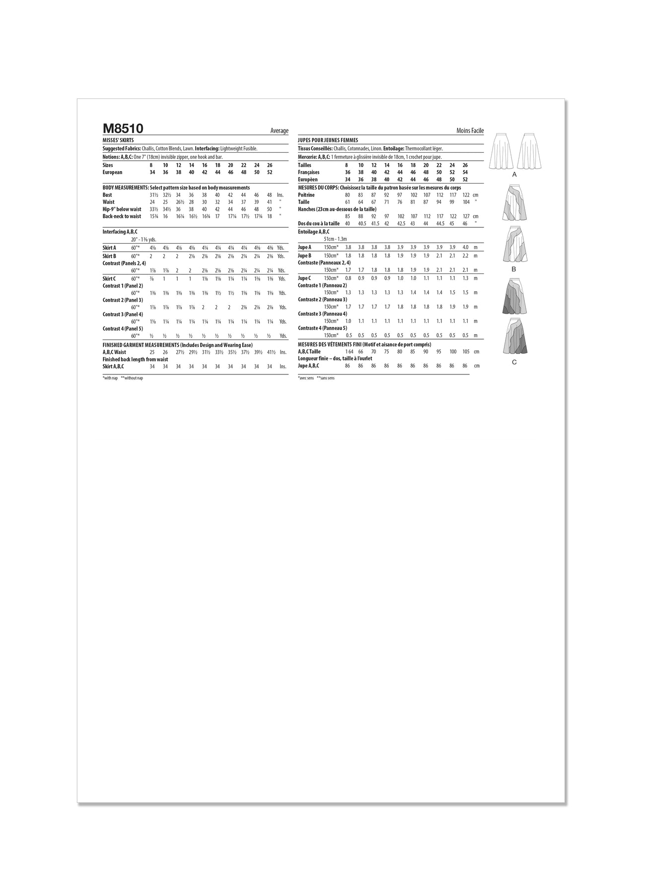 | Pattern Name | McCall’s M8510 Misses’ Skirts |