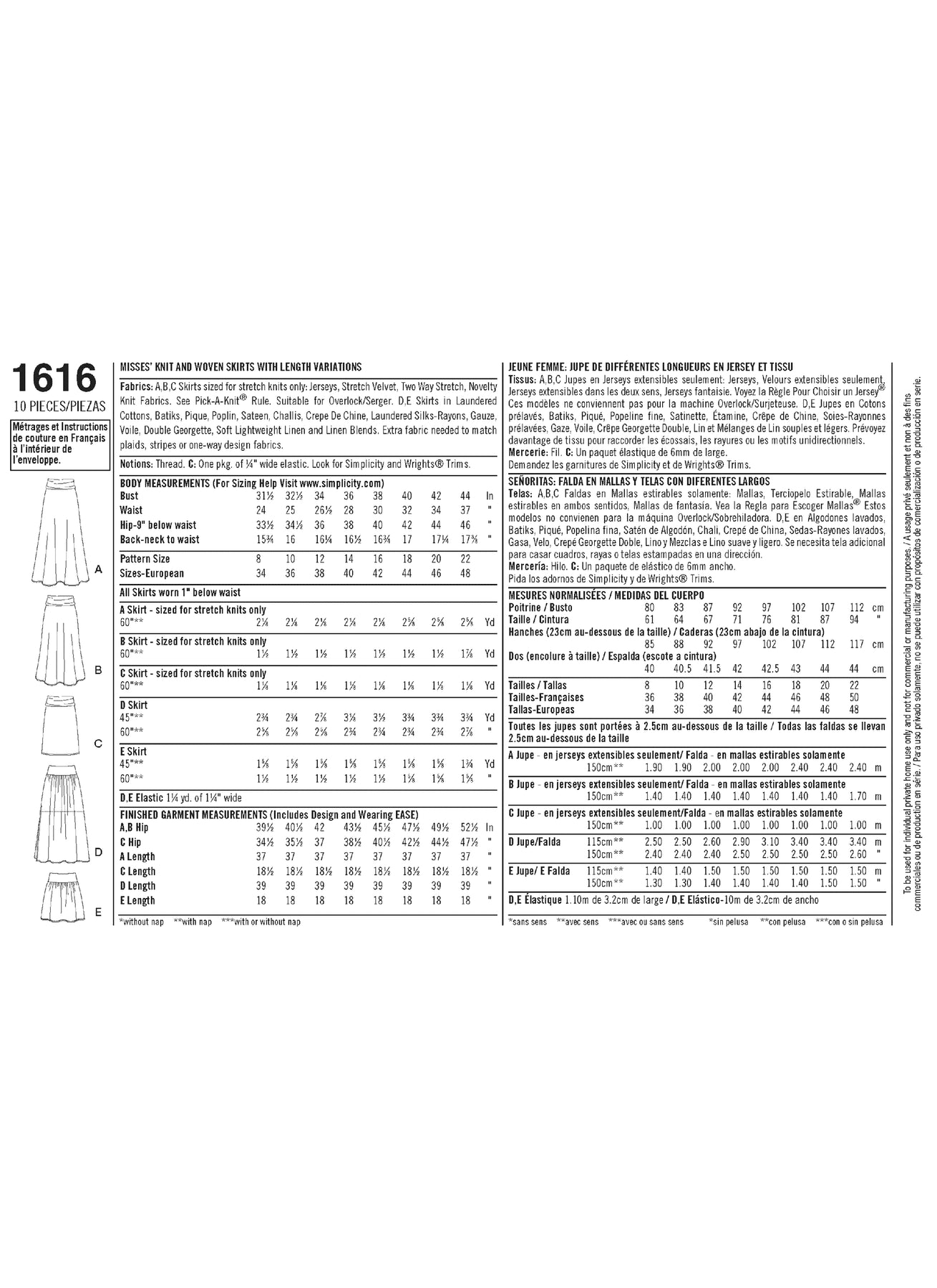 | Pattern Name | Simplicity S1616 Misses’ Skirts |