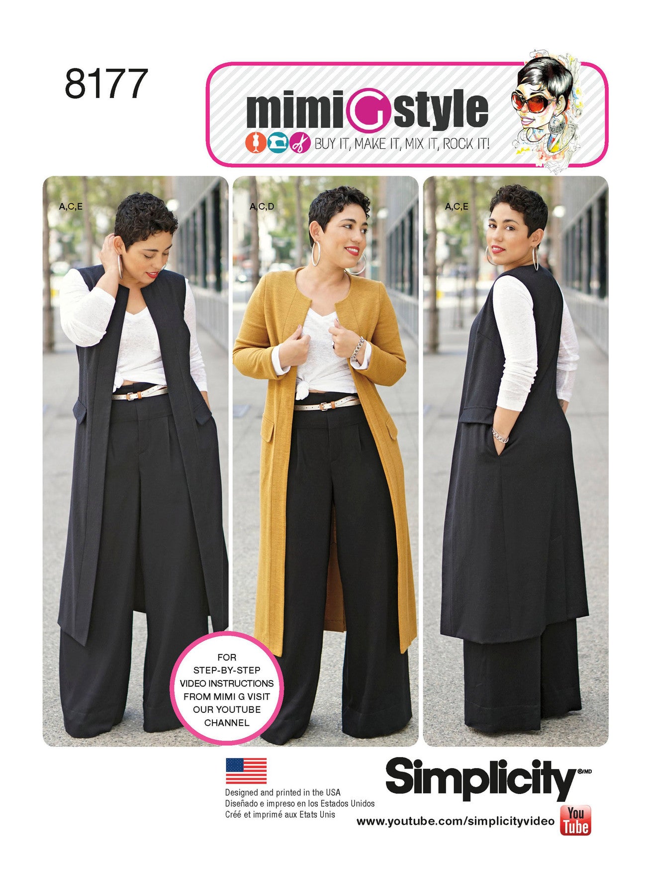 Simplicity S8177 – Mimi G Style Pants, Coat/Vest & Knit Top Sewing Pattern (Sizes 10–18)
