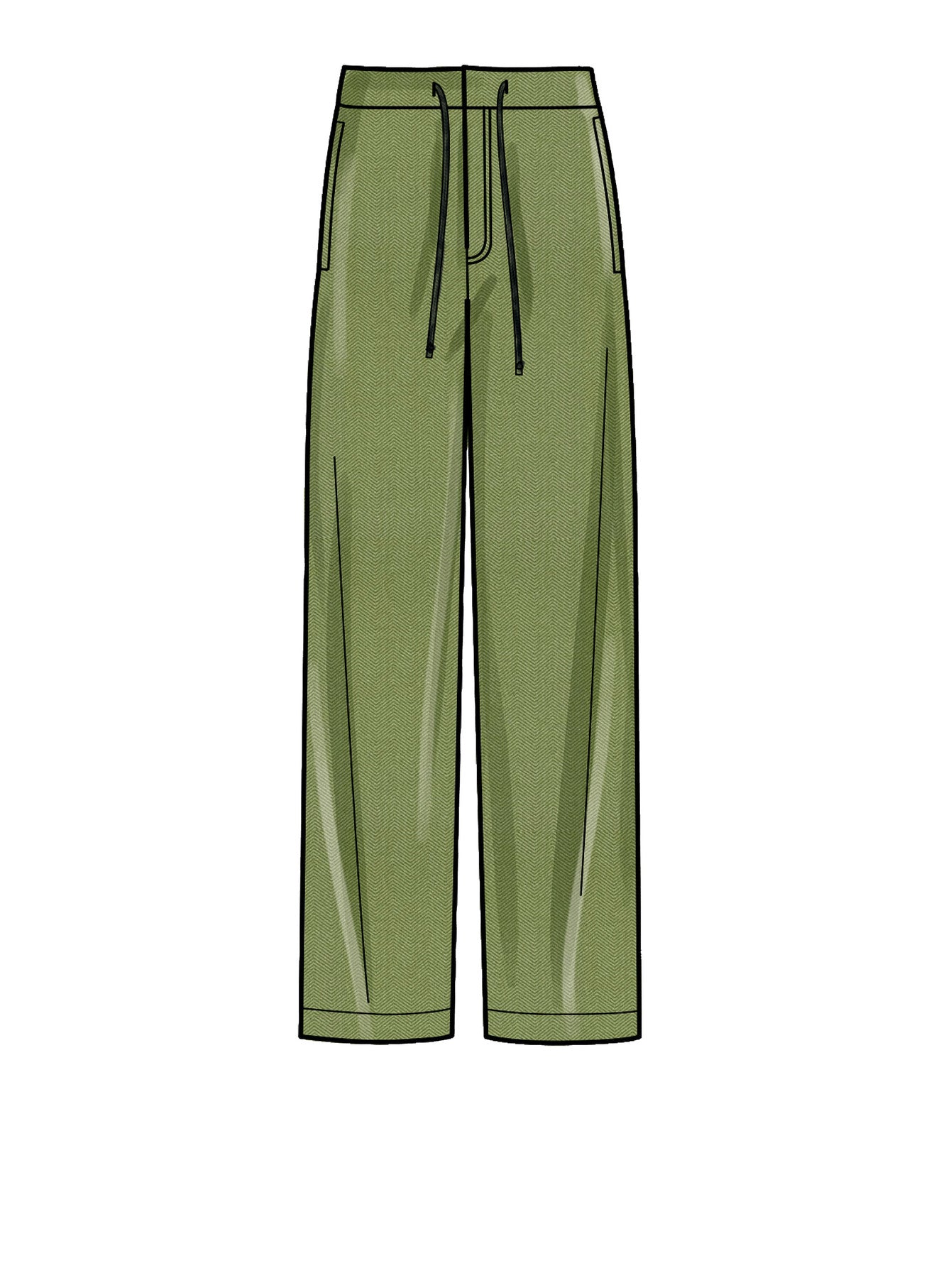 | Fabric Needed | Tops: Interlock, jersey, ribbed knits. Pants: Linen, lightweight denim, cottons |