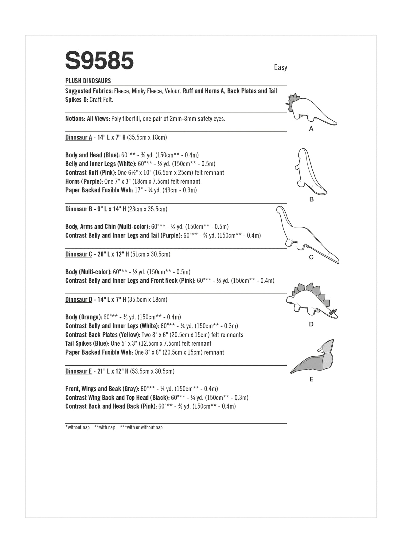 | Pattern Name | Simplicity S9585 Plush Dinosaurs |