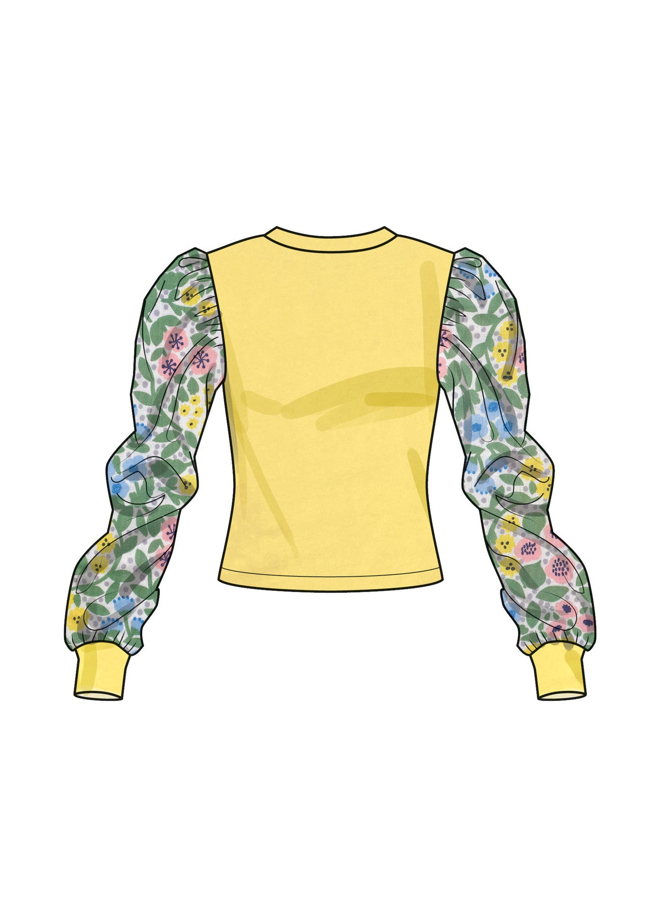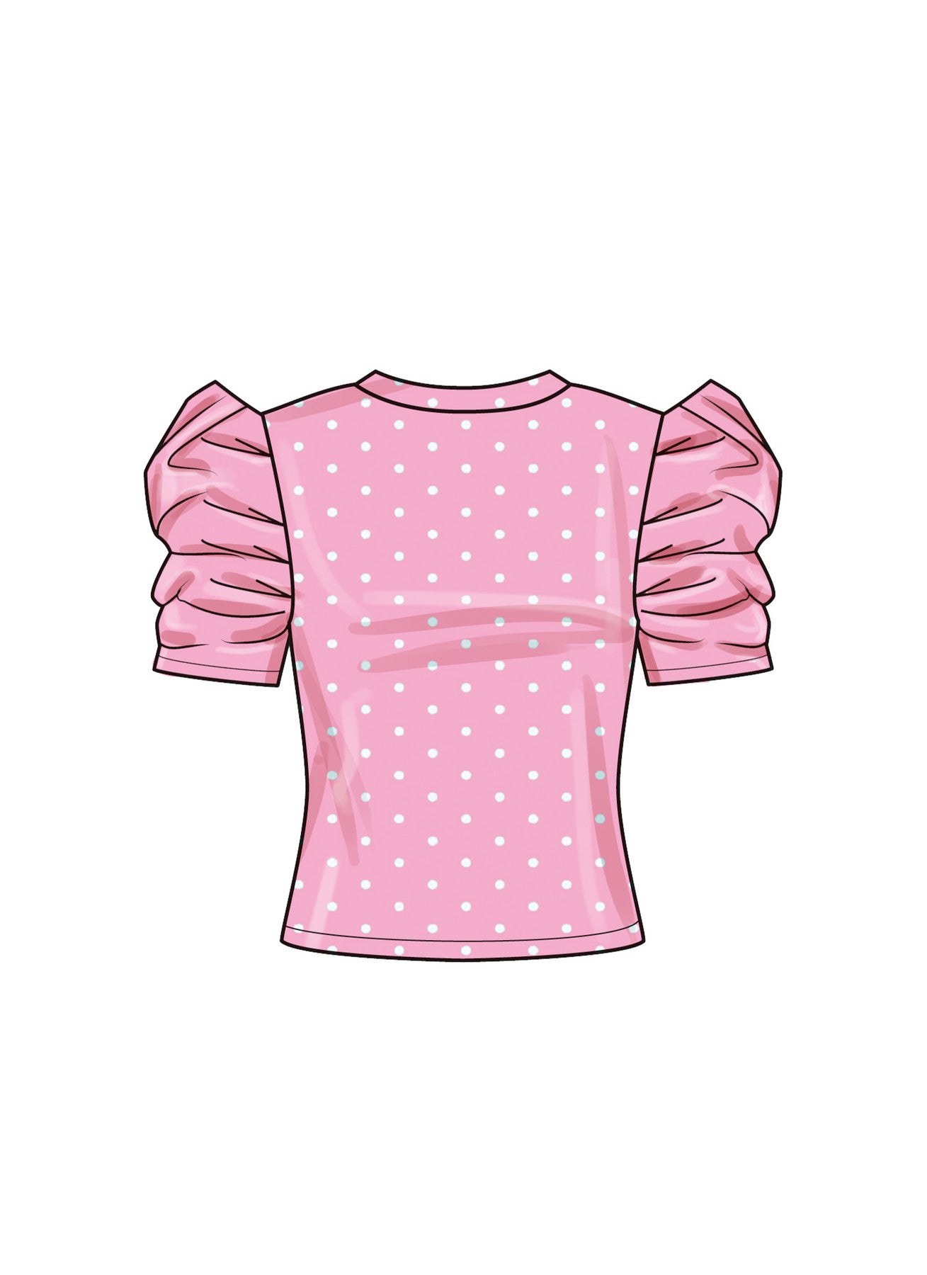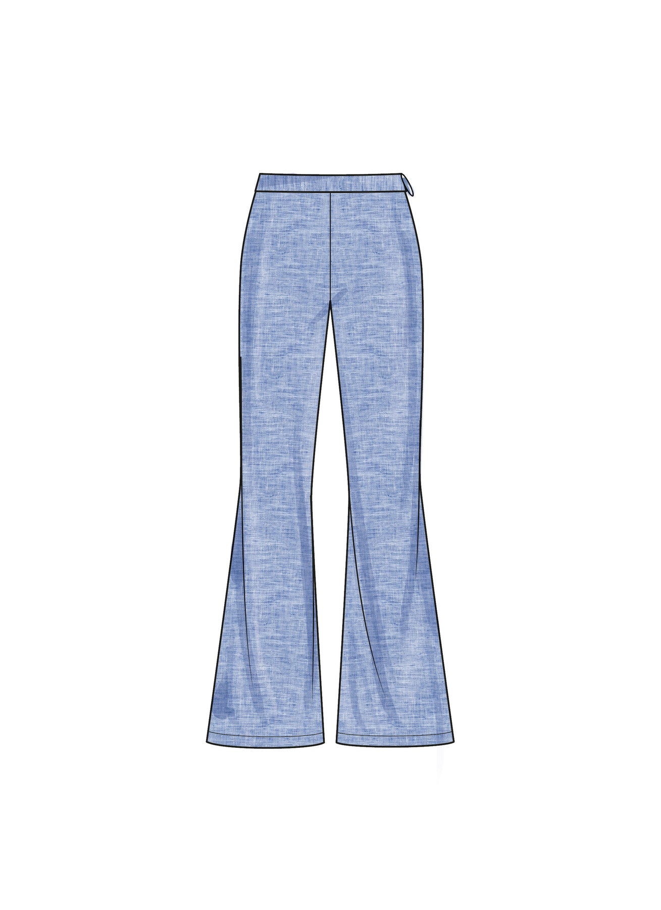 | Views Included | View A long-sleeve top with gathered woven sleeves, View B short-sleeve top, View C flared pants with pockets and invisible zipper |