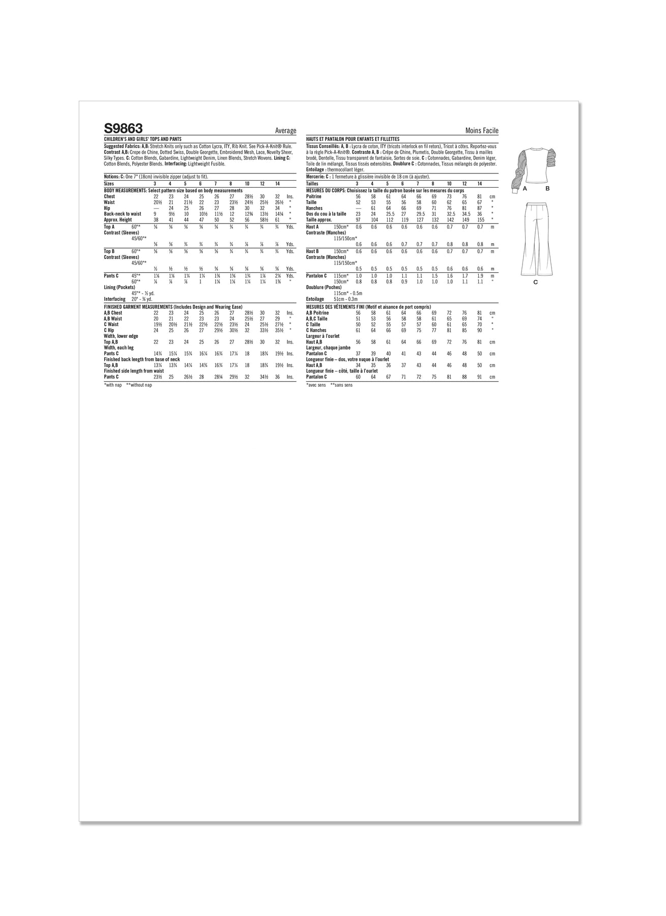 | Pattern Name | Simplicity S9863 Children’s & Girls’ Tops and Pants |