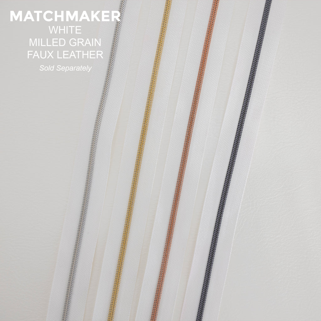 Matches nicely with our White Milled Grain Faux Leather, & White Tex 45 Thread, sold separately. Order Zipper Pulls and Ends separately.