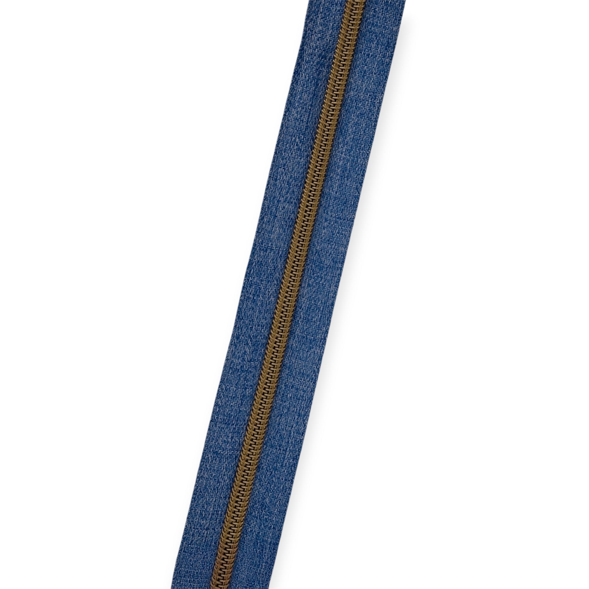 #5 Nylon Zipper Tape – Denim with Antique Brass Coil