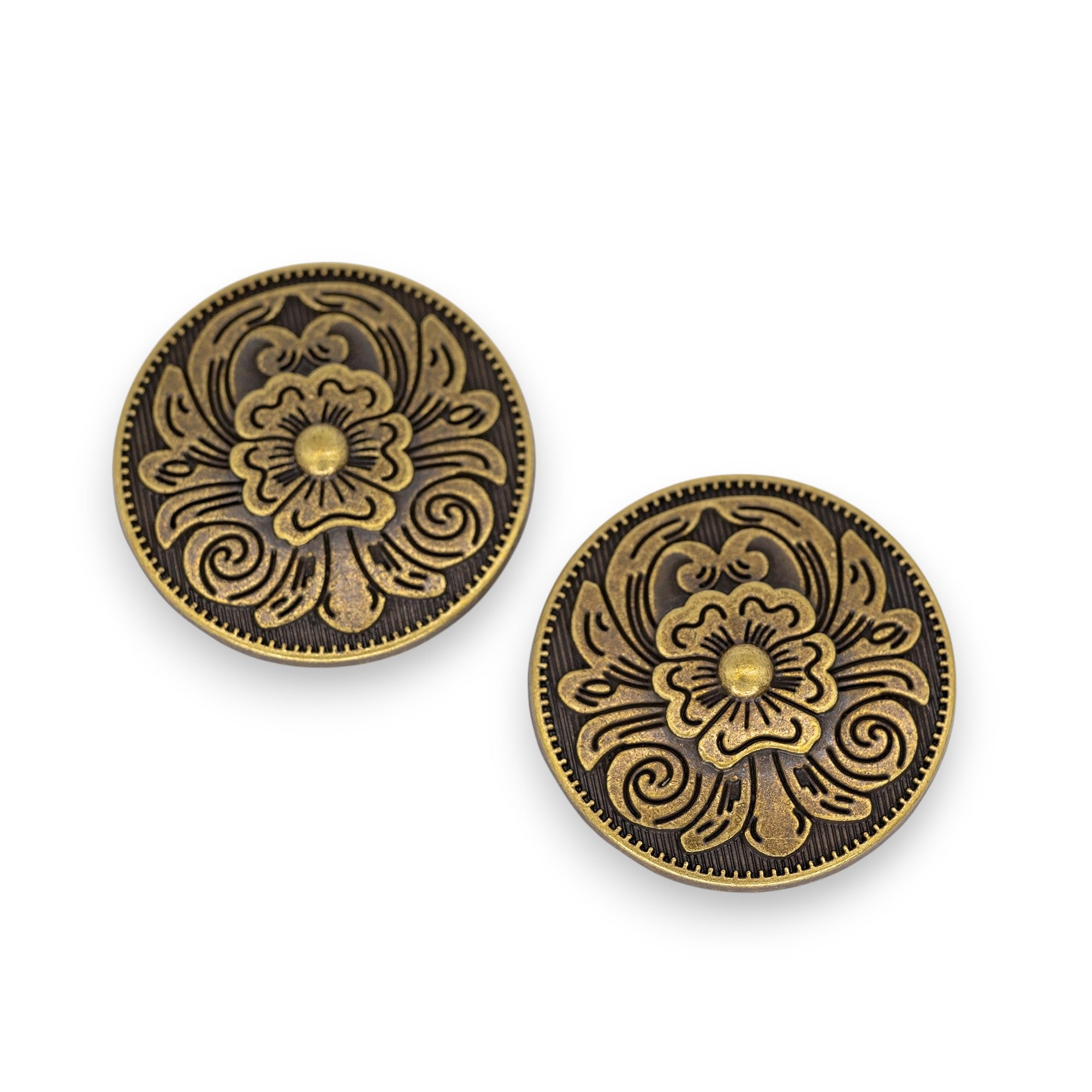 Antique Brass Floral Screwback Conchos | Bag Hardware Set of 2