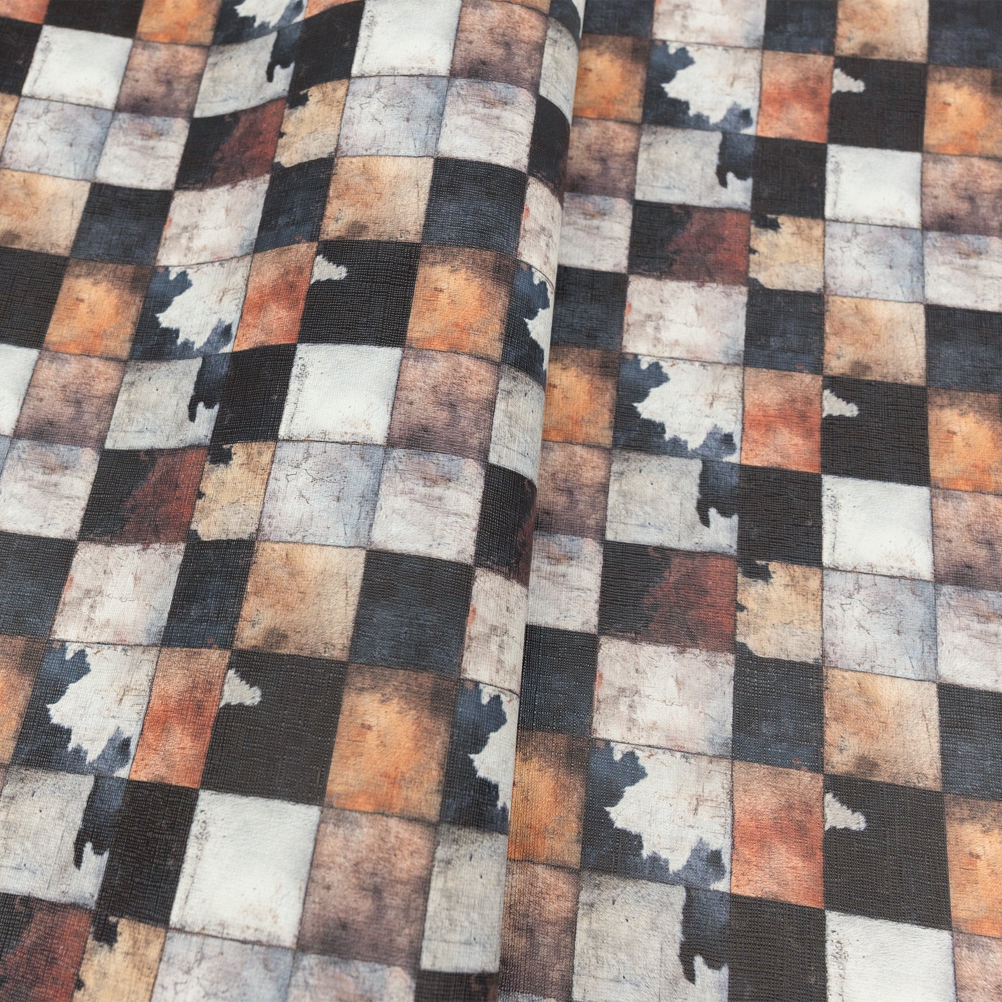 | Cowhide Patch Printed Vinyl | 18" × 53" roll Linen texture with abstract shard pattern |